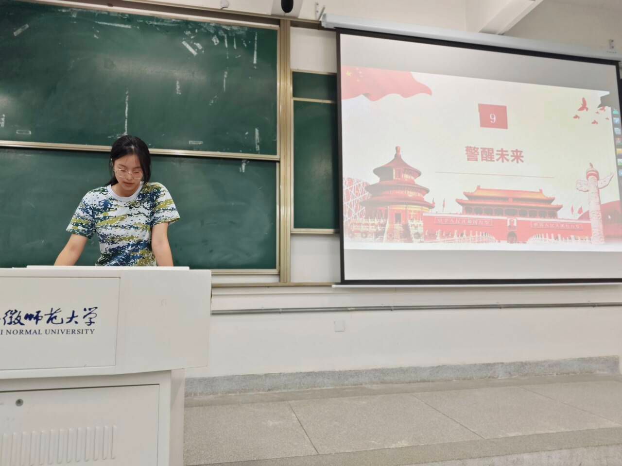 辅导员王芳作总结发言,她指出历史是最好的教科书,也是最好的清醒剂,历史不应被遗忘,英雄应被铭记。希望全体同学能够牢记中华民族苦难辉煌的历史,铭记战火纷飞的年代,直面英雄人物的光辉事迹,从自身做起,从点滴做起,为实现中华民族伟大复兴的中国梦贡献自己的力量,希望莘莘学子树立铭记历史、勿忘国耻、振兴中华的理想和信念。
