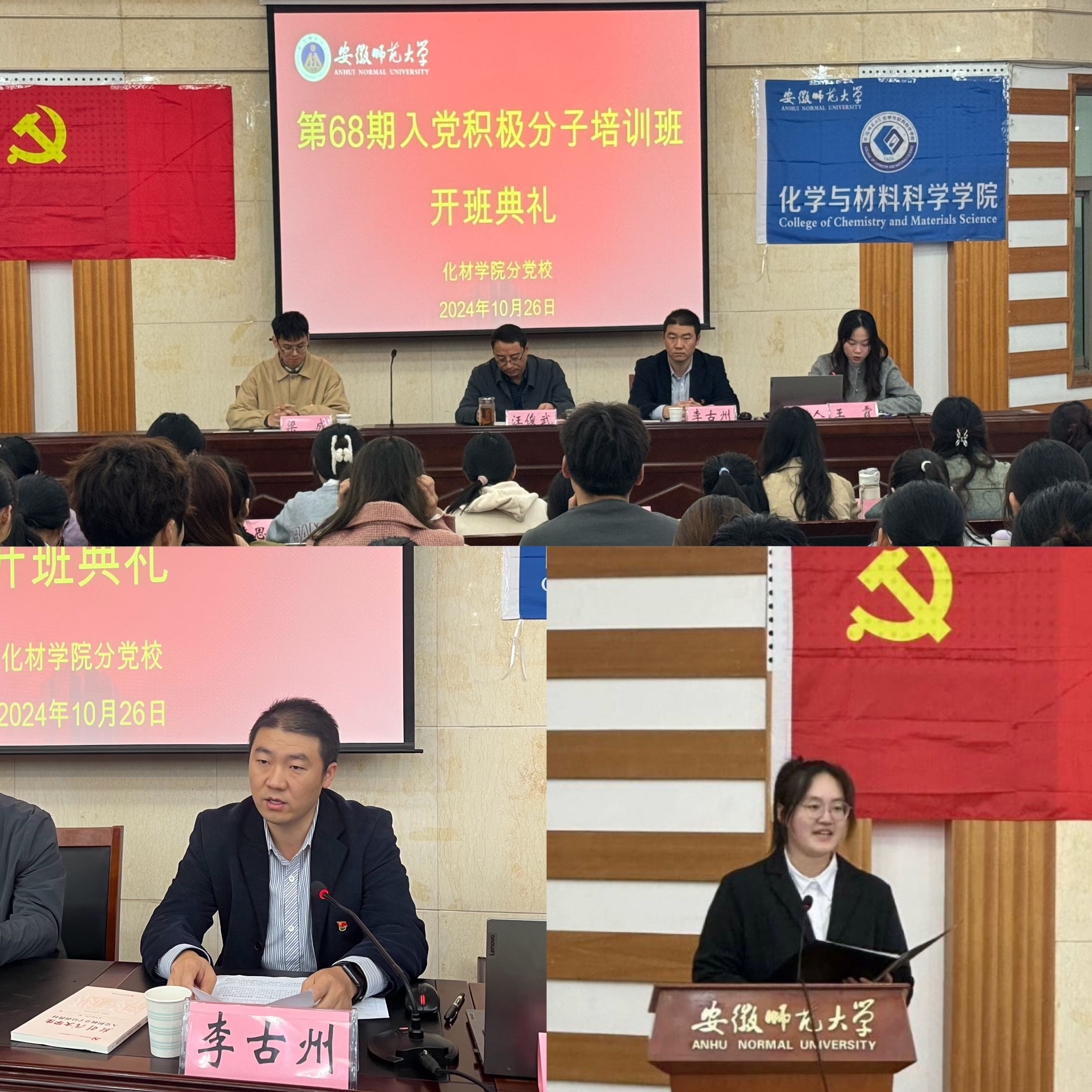 党委书记汪俊武、党委副书记李古州、团委副书记王霞、培训班班主任梁成及全体学员参与此次开班典礼,活动由王霞主持。在庄严的国歌中,开班仪式拉开帷幕。梁成宣读了培训班班委任命及班级管理制度。2023级化学(师范)专业郜子闻作为学员代表发言,她表示,作为新时代大学生,一定要始终坚持以学业为主,努力提升自己的专业知识水平,积极参与各类志愿服务活动,不断拓宽自己的视野,身体力行地回报社会,奋力书写为中国式现代化挺膺担当的青春篇章。