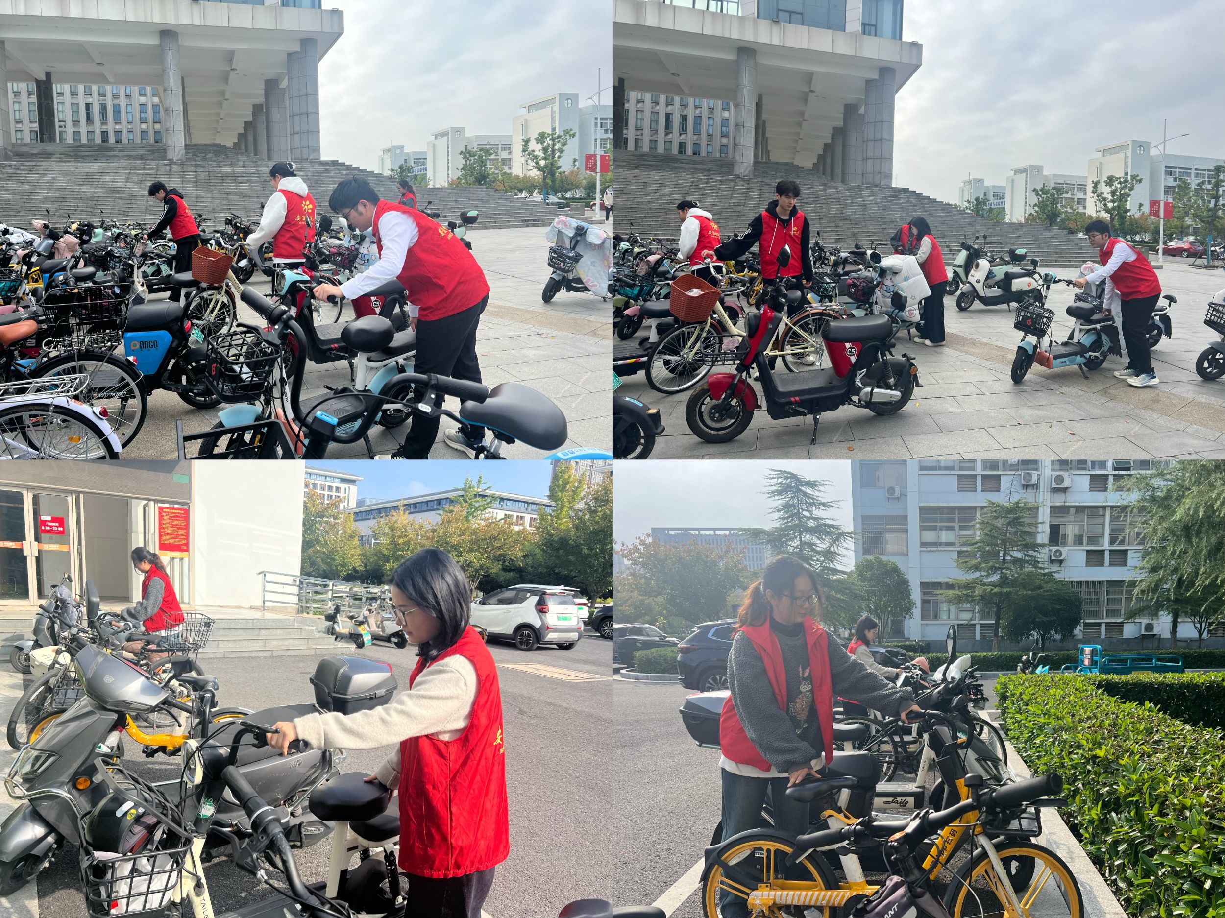 为积极响应学校大学生“六个文明”教育实践专项活动及校园非机动车管理工作,学院组织入党积极分子分批次、分区域开展志愿服务实践活动,对学院楼区域内电动车进行秩序维持。小组内组员分工明确,将乱停乱放的非机动车整齐排列,并推回到指定区域,并向周边同学宣传文明有序停车的重要性。通过此次活动,入党积极分子纷纷表示要将理论学习应用于实践中,做表率,不怕苦、敢担当,为校园文明创建贡献自己的一份力量。