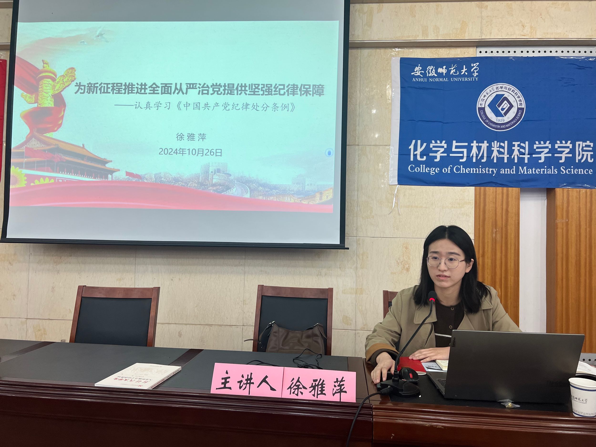党委组织部、机关党委机关事务管理科科长徐雅萍以《党的纪律处分条例》为题,结合生动典故与警示案例,从深刻认识修订《条例》的重要意义、《条例》主旨要义、《条例》相关内容解读、抓好《条例》贯彻执行等四个方面,对《条例》进行深入细致的梳理解读,她希望学员们在日常的学习生活中能够加强党纪学习教育,进一步增强纪律意识、规矩意识,筑牢思想防线、加强个人操守修养,争做“学纪、知纪、明纪、守纪”的新时代青年。