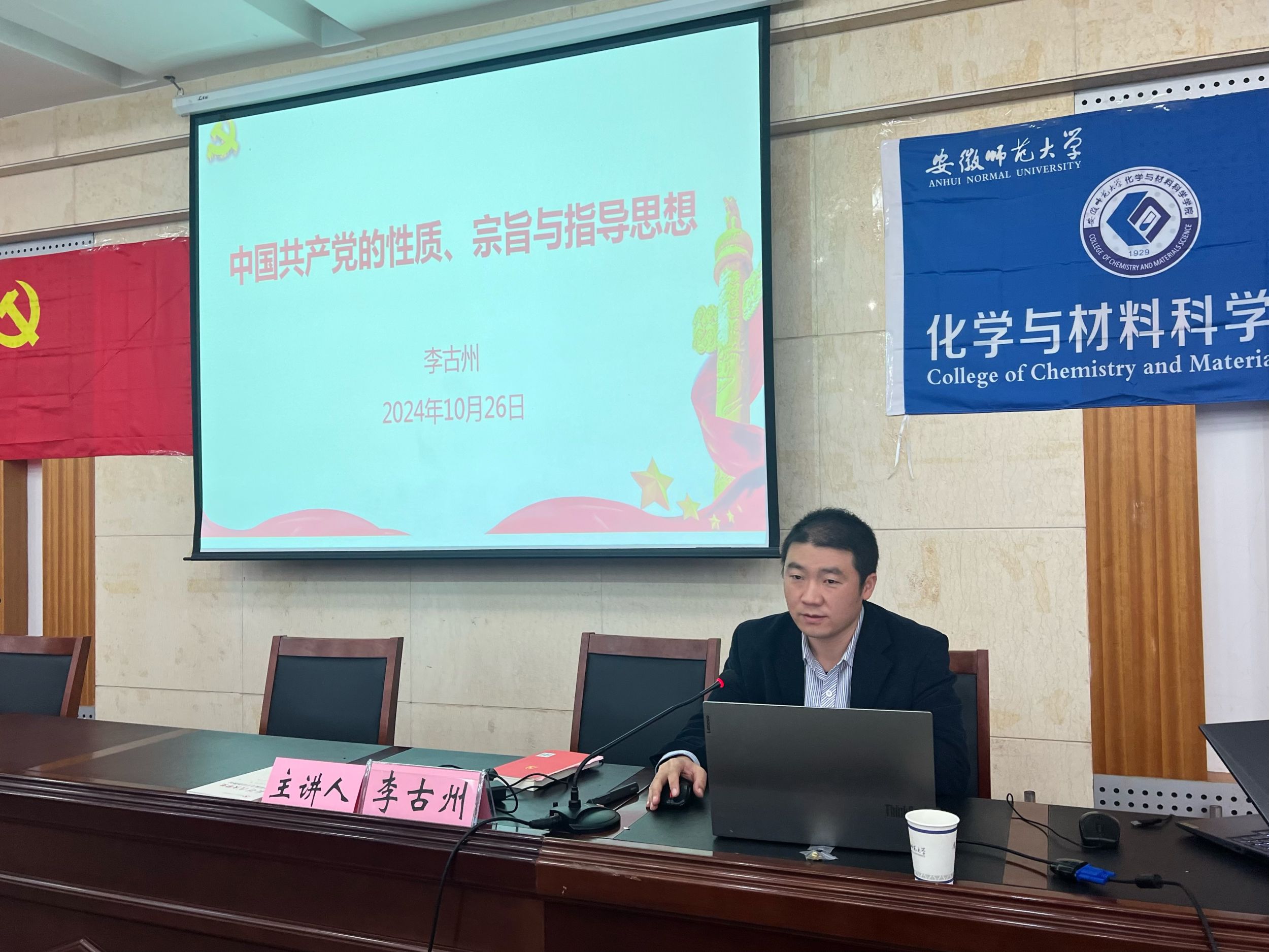 李古州围绕《中国共产党的性质、宗旨与指导思想》的主题,从宗旨的概念、党的根本宗旨主要内容帮助学员深刻理解了中国共产党的宗旨。从党的指导思想的发展历程讲述党百年来思想建设的经验和启示。他结合习近平总书记对青年的殷殷嘱托和习近平总书记考察安徽讲话精神,希望同学们能自觉做远大理想和共同理想的坚定信仰者和忠诚实践者,用信仰点亮人生、用理论坚定自信、用奋斗成就梦想。