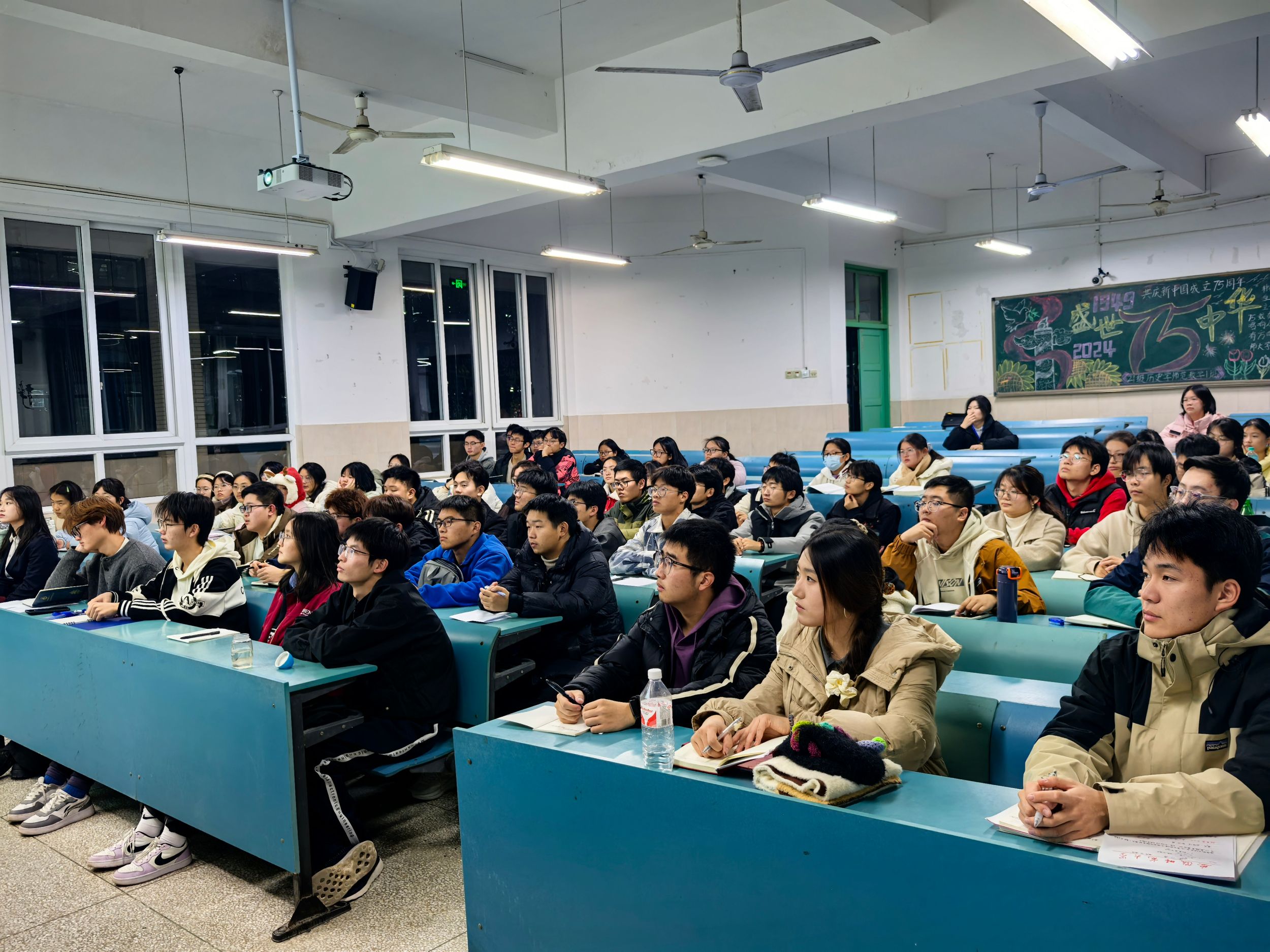 团委在行知楼5号楼101教室成功举办了第18期“Happy Hour”活动。此次活动以“协同创新,智启新篇—谈大学生竞赛与成长”为主题,特别邀请了学院孙影教授为2023级和2024级的同学们带来了主题为“数智时代的机遇和挑战”的精彩讲座。
