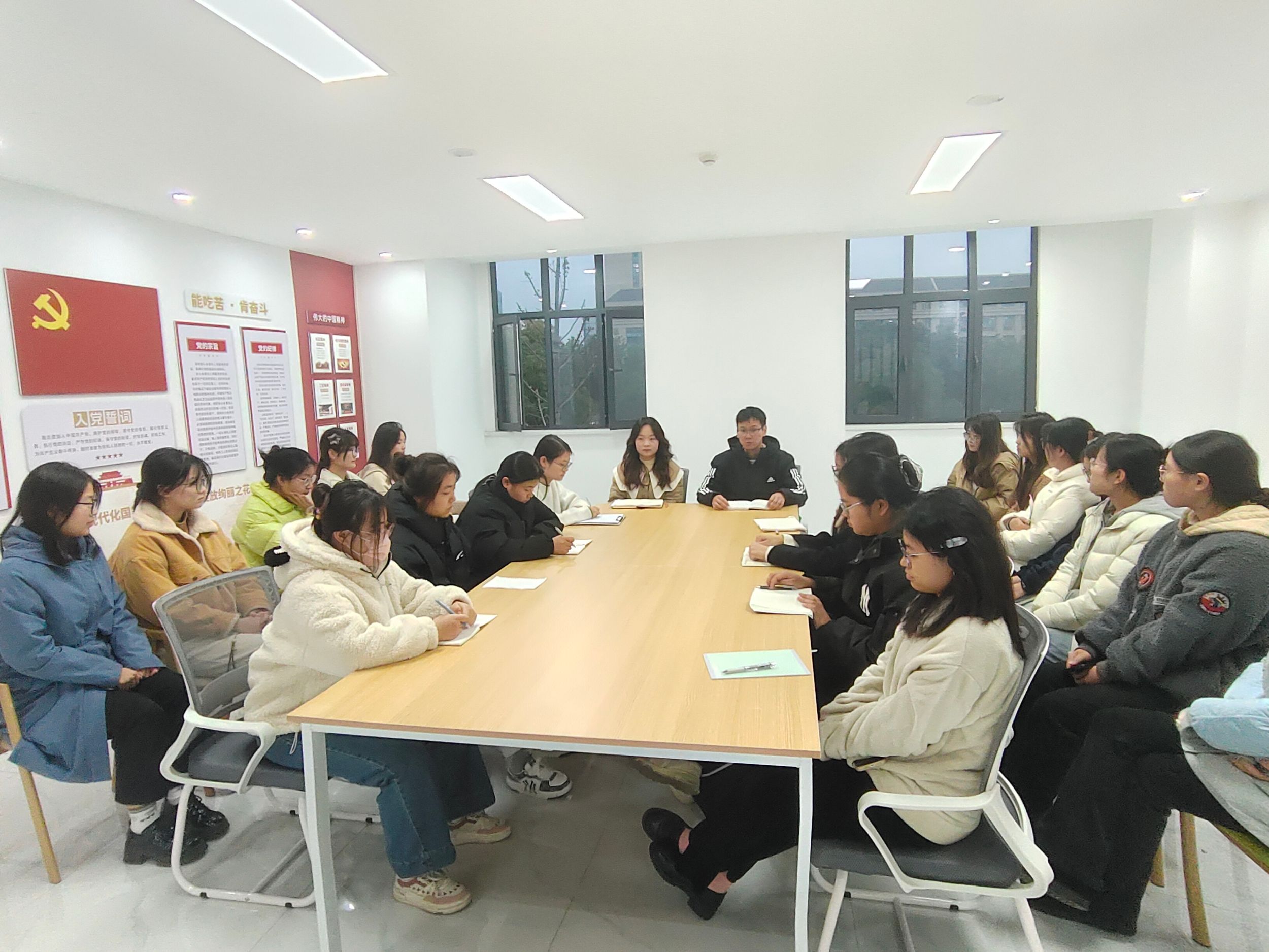 在一站式学生社区的“思享汇”——党建思政课堂,辅导员王霞开展名为《学习贯彻党的二十届三中全会精神,做担当复兴大任的强国青年》的主题微党课,希望同学们作为学校与宿舍之间的沟通桥梁,充分发挥榜样带动作用,以科学理论之“知”引领方向、以初心使命之“行”促践行,努力学习、提升自我、关注社会、投身实践,书写历史责任,自觉磨砺奋斗奉献的青春力量。