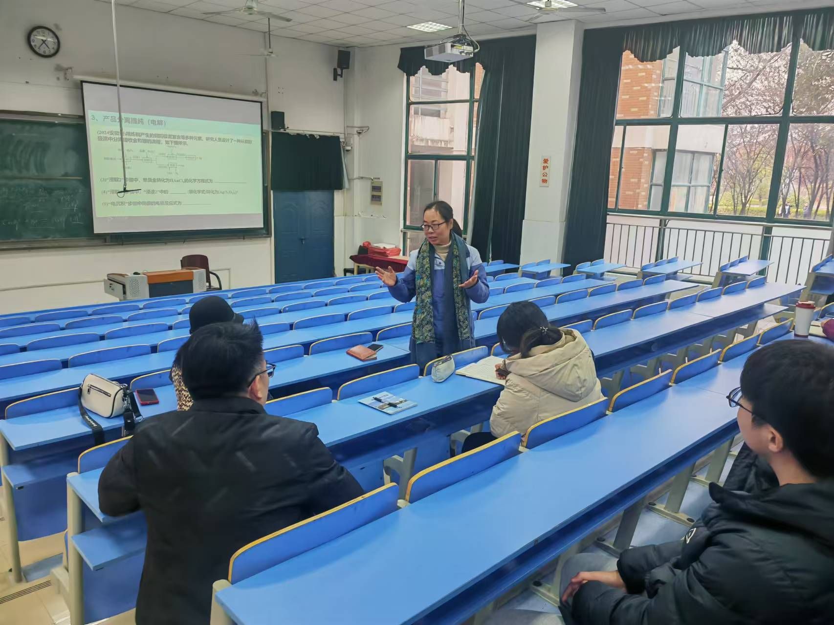 的师生们共同观摩了芜湖十二中化学组齐婧老师带来的面向高三复习的化学工艺流程专题课程。齐老师以高考真题为切入点,深入剖析化学工艺流程题的解题关键与思路,从原料预处理、核心反应原理到产品分离提纯,层层递进,逻辑清晰,同时巧妙地融入了学科核心素养的培养方法,向同学们展示了如何在高三复习中高效提升学生的解题能力和化学思维品质,在座的同学们全神贯注,认真聆听记录,对齐老师娴熟的课堂教学赞叹不已,也进一步明确了高三化学复习教学的重点与方向。