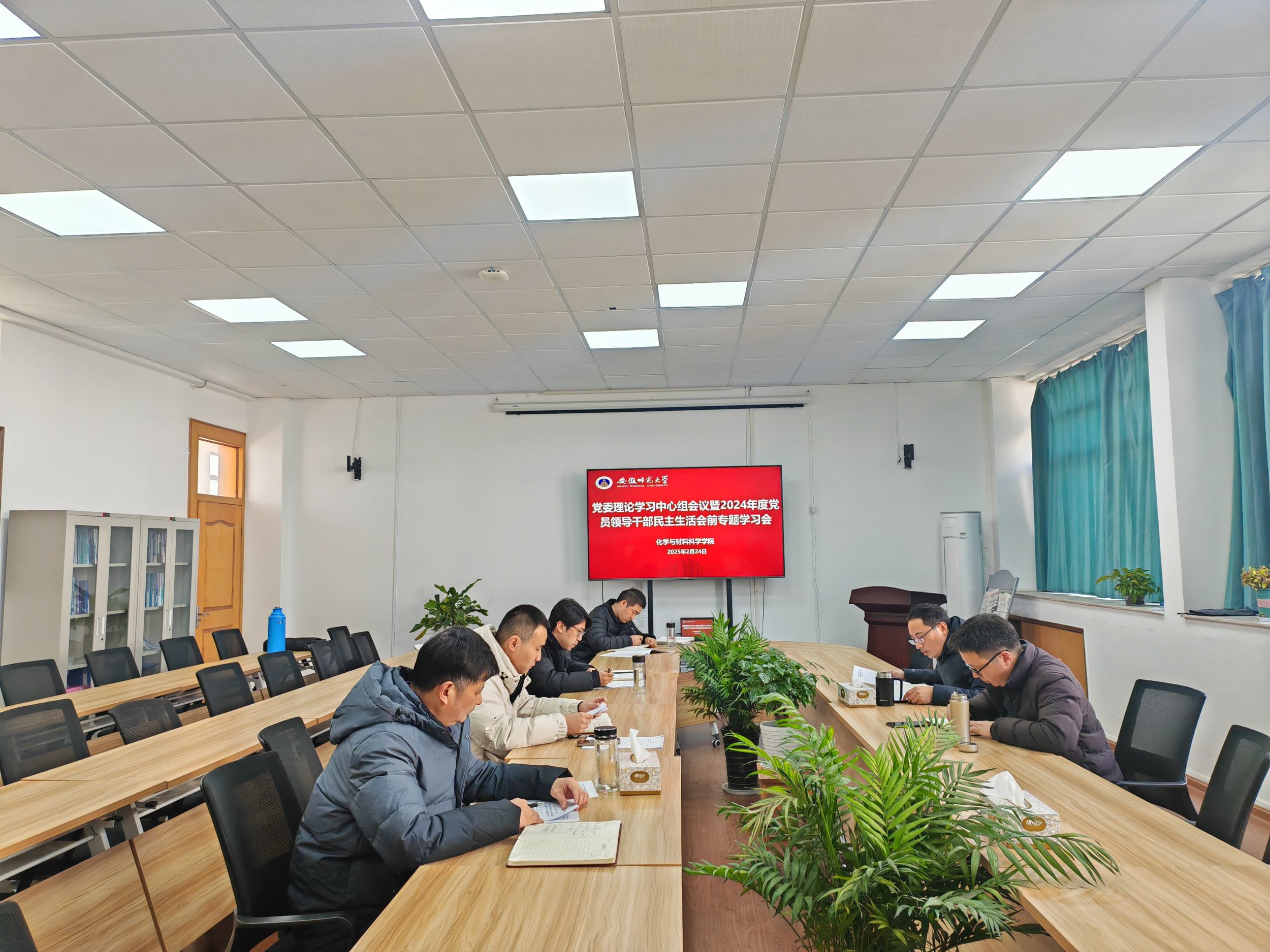 在学苑北楼9号楼205会议室召开党委理论学习中心组会议暨2024年度党员领导干部民主生活会会前专题学习会,学院领导班子成员、党委委员参会。会议由院党委书记汪俊武主持。