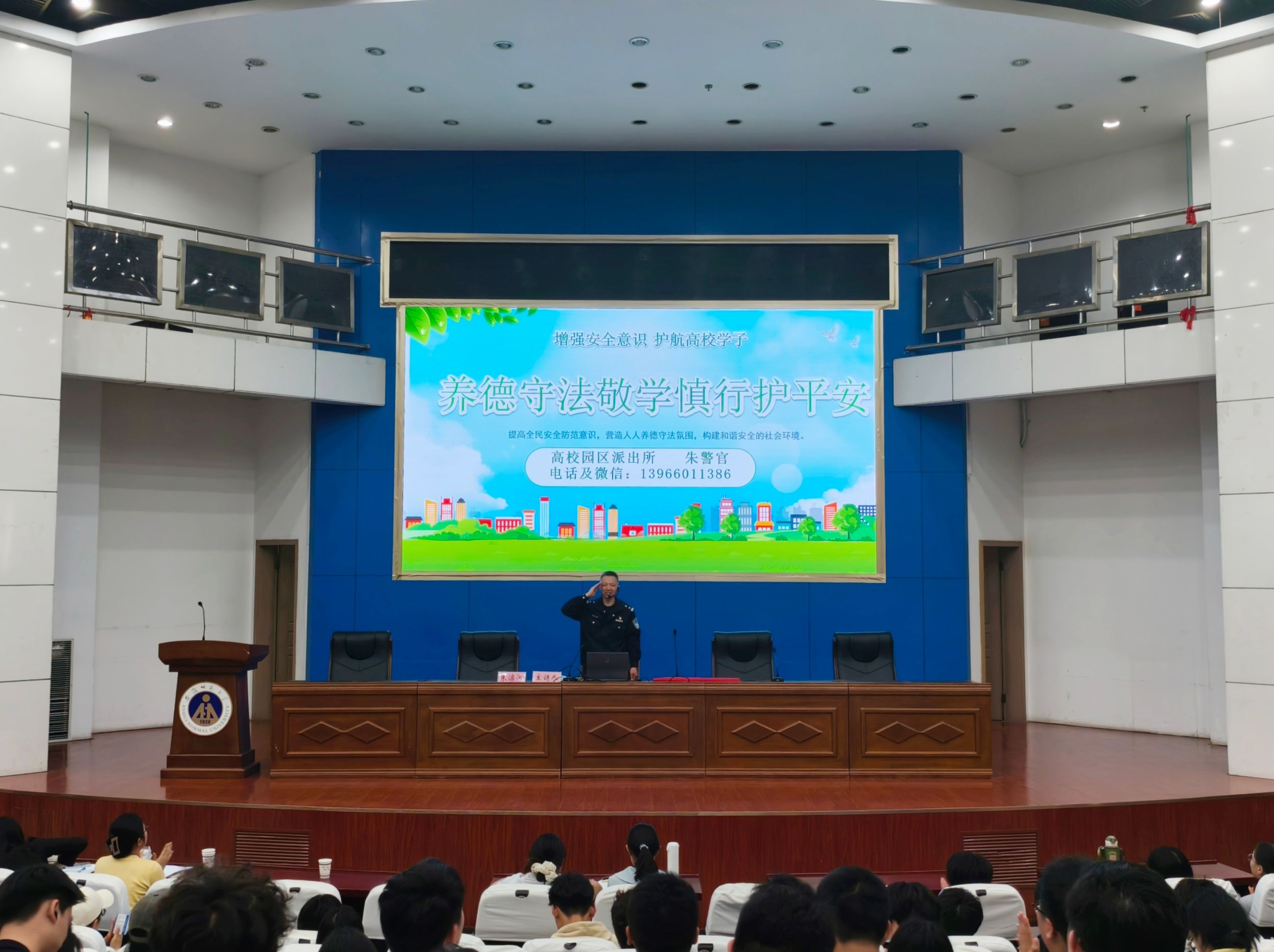 学院邀请高校园区派出所副所长朱滦河作题为《增强安全意识 护航高校学子》的专题讲座。他围绕“养德守法敬学慎行护平安”展开授课,重点强调了预防诈骗。朱警官凭借丰富的从业经验和知识,从“什么是诈骗”“常见的诈骗手段”“怎样有效预防诈骗”“真实案例”“防诈知识互动问答”等方面进行阐述,结合高校的典型案例、真实数据,深入剖析校园诈骗的运作机制,为同学们揭开校园骗局的层层面纱。提醒同学们不要轻信陌生人、不要点击不明链接、注意保护个人信息等,以警校联合的方式为学生提供安全保障。他强调,寝室长和学生干部是开展校园安全教育的中坚力量,必须带头宣传校园安全知识,营造平安、和谐的学习生活氛围。同学们纷纷表示,通过此次讲座,更加深刻地认识到防范诈骗不仅关乎个人财产安全,更是维护社会安全的关键。