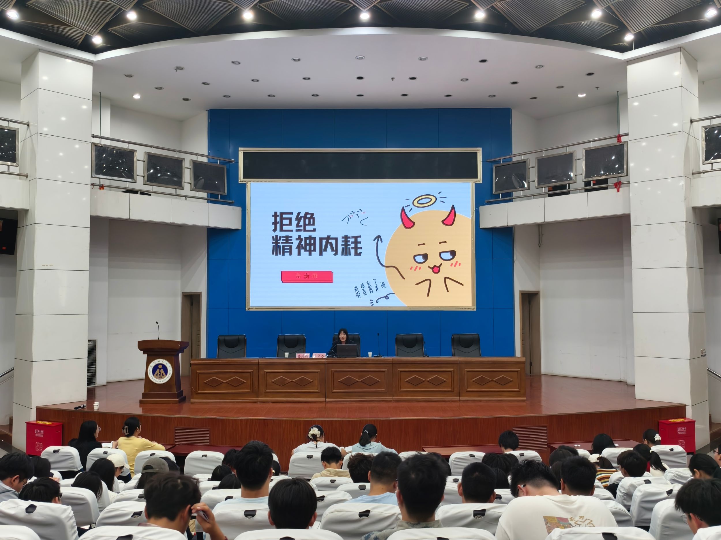 学校心理健康中心岳潇雨老师以《拒绝精神内耗》为主题展开授课。她详细介绍了“过度思考型”“自我怀疑型”“完美主义型”“敏感多虑型”四种精神内耗形式,并通过阐述精神内耗对心理、生理、社交等方面带来的危害,以及“学会课题分离”,引导同学们减少精神内耗,学会改变认知思维,并积极去行动,这场讲座让同学们对自我内耗有了更深的了解,为广大学生的身心安全提供了保障。