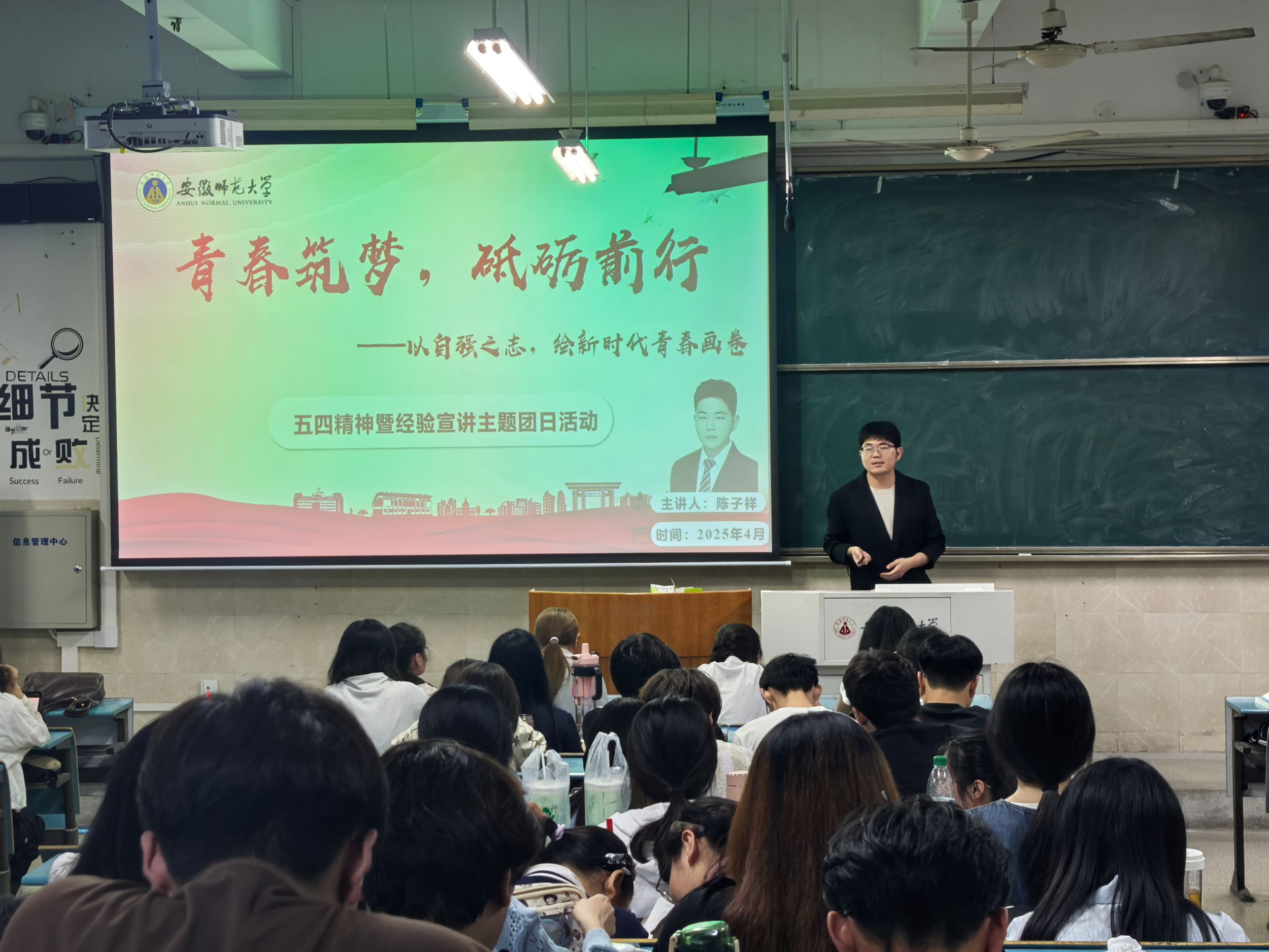 各班级以学习五四精神,组织开展五四青年节为主题的主题教育实践活动。班级紧扣"爱国、进步、民主、科学"的五四精神核心要义,创新教育载体,通过主题团课、红色经典诵读、历史影像展播等生动形式开展理论学习,让五四精神在新时代焕发新的光彩引导青年学子深入领会五四精神的时代价值与现实意义,在学思践悟中厚植爱国情怀,在躬身力行中彰显青春担当。张晟和陈子祥从社会实践、团队协作、个人发展等方面进行宣讲,强调青年学习五四精神的重要性,并为2024级学生提供了宝贵的经验与建议。23级、24级学生对于本次团课收获颇丰,这既是对五四运动实践的了解、五四精神的学习,更是一场对时代青年提升自我修养的反思,值得每一位青年深思。