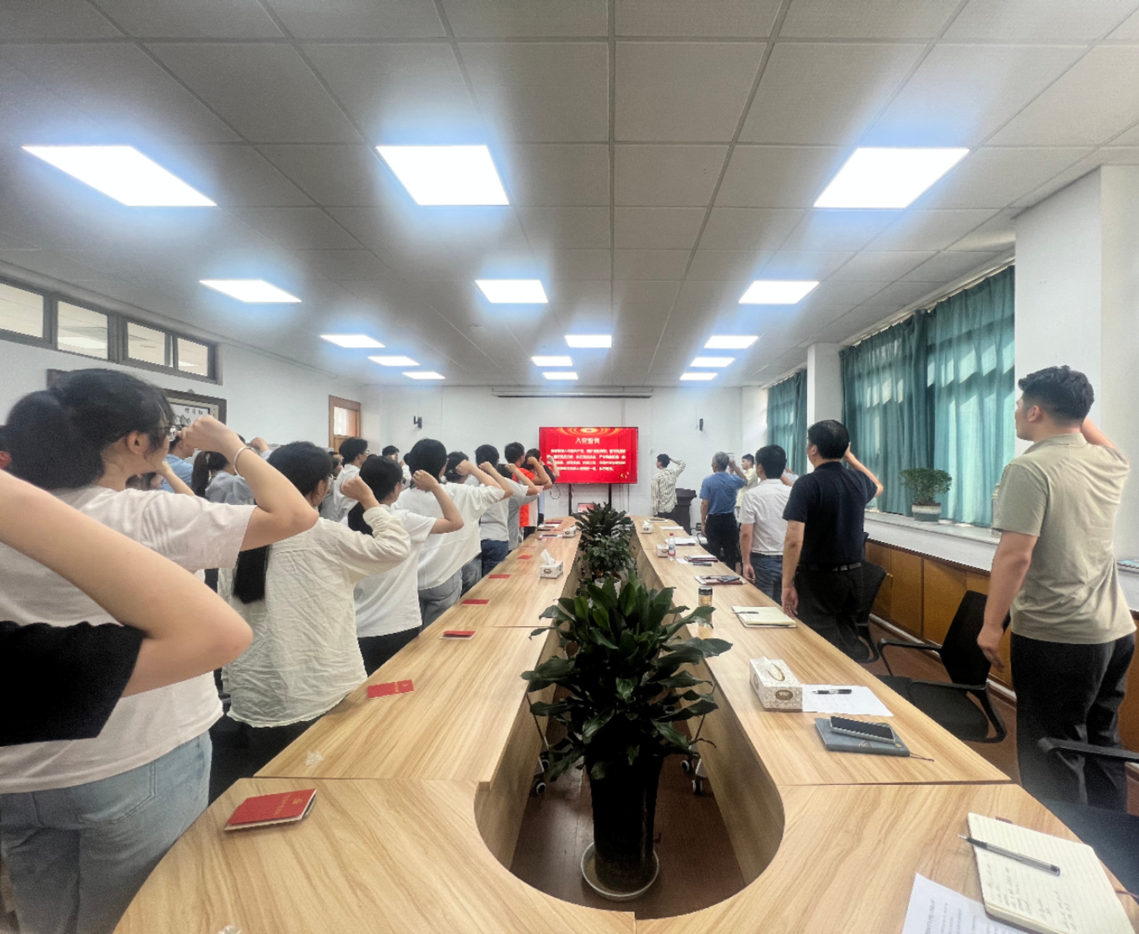 庄严入党宣誓。学院党委委员、支部书记为新发展的党员发放《中国共产党章程》、佩戴徽章,与会党员共同进行入党宣誓。全体党员握拳过肩,面向鲜红的党旗,在领誓人的带领下,庄严宣誓。党员们情绪饱满,字字铿锵,在激昂的宣誓声中进一步强化了对党忠诚、全心全意为人民服务的使命意识。梁齐军对新发展党员表示祝贺,希望大家坚定理想信念,牢记入党誓词和共产党员的初心使命;希望大家不断提升自身的政治素质和党性修养,坚持用习近平新时代中国特色社会主义思想武装头脑,在自我革命中永葆先进本色;希望大家珍惜党员身份,严于律己,用实际行动去践行入党誓词,为中华民族伟大复兴贡献青春之力。