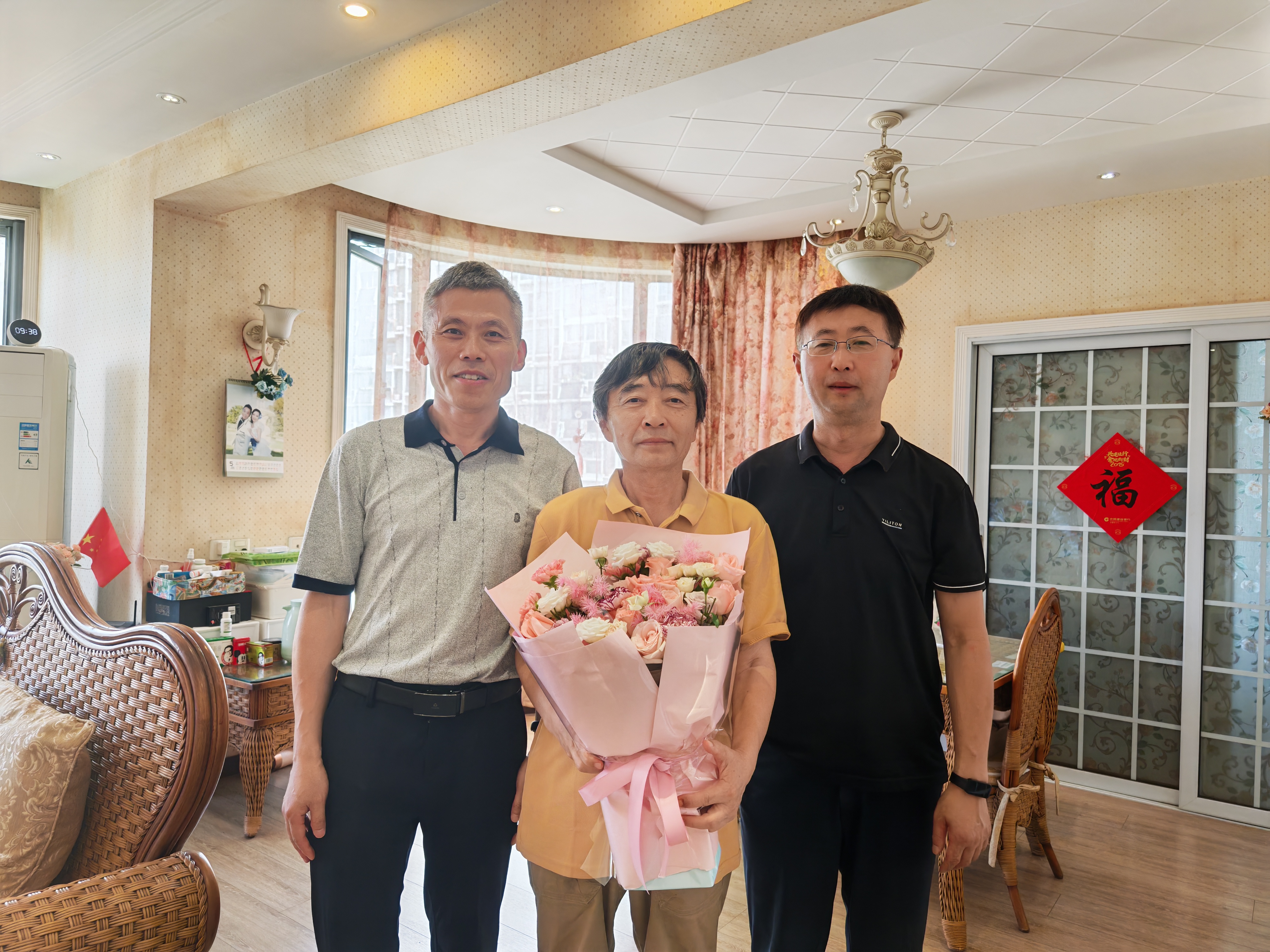 七一慰问退休、生病党员。学院党委书记梁齐军、退休教工党支部副书记张年荣一起走访慰问生病党员,梁齐军代表学院党委详细了解老党员的身体状况和生活情况,转达组织的关心与关怀,感谢他们对学院工作的关注和支持。接受慰问的党员们表示,在七一当天受到慰问,充分感受到了学校、学院党委的关心关怀,表示将继续发挥余热,贡献银发力量,用实际行动践行“退休不退志、余热映初心”的庄严承诺,将继续关注和支持学院建设,继续牢记入党初心,践行入党誓词,尽自己所能发光发热,为学校的高质量发展贡献自己的力量。
