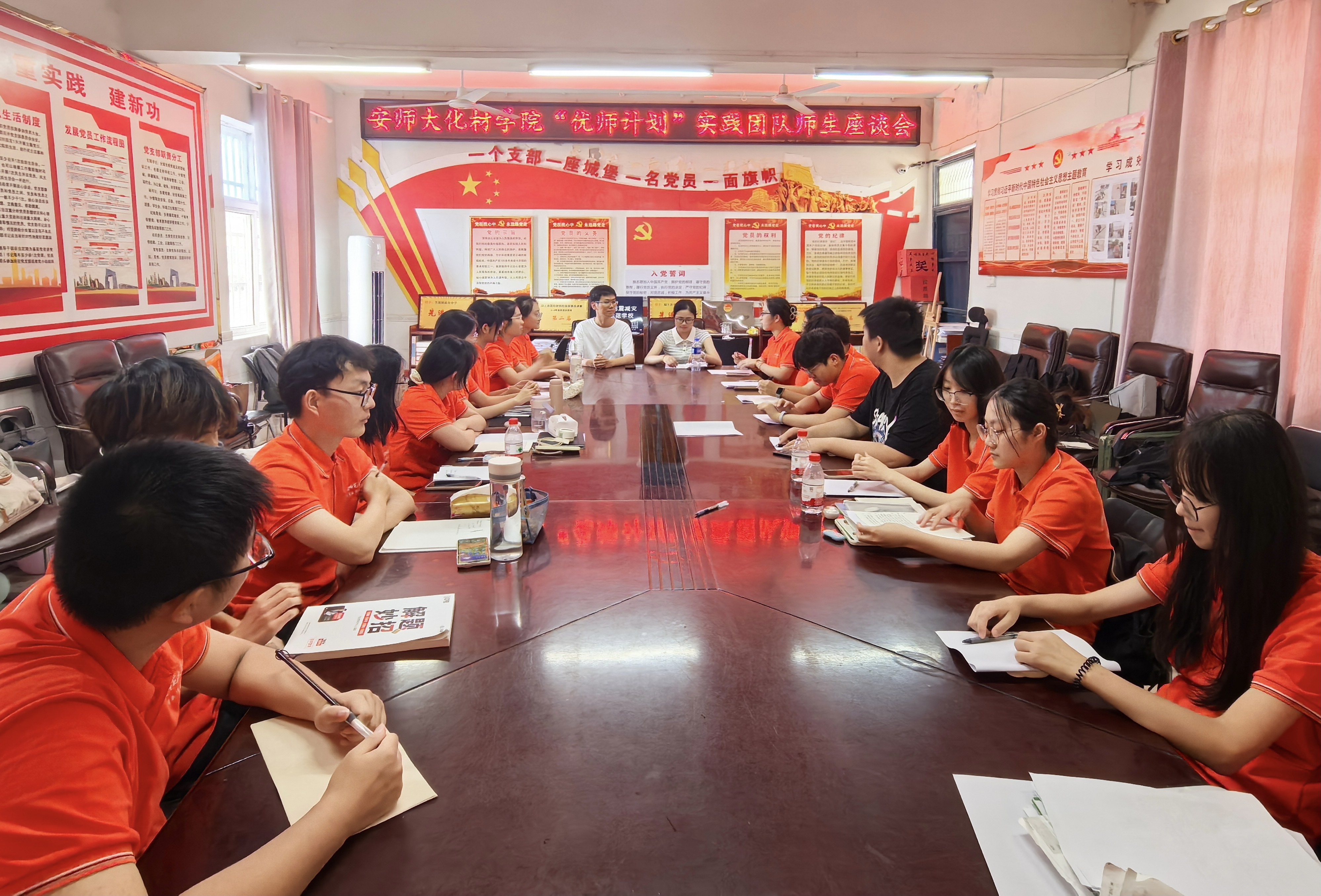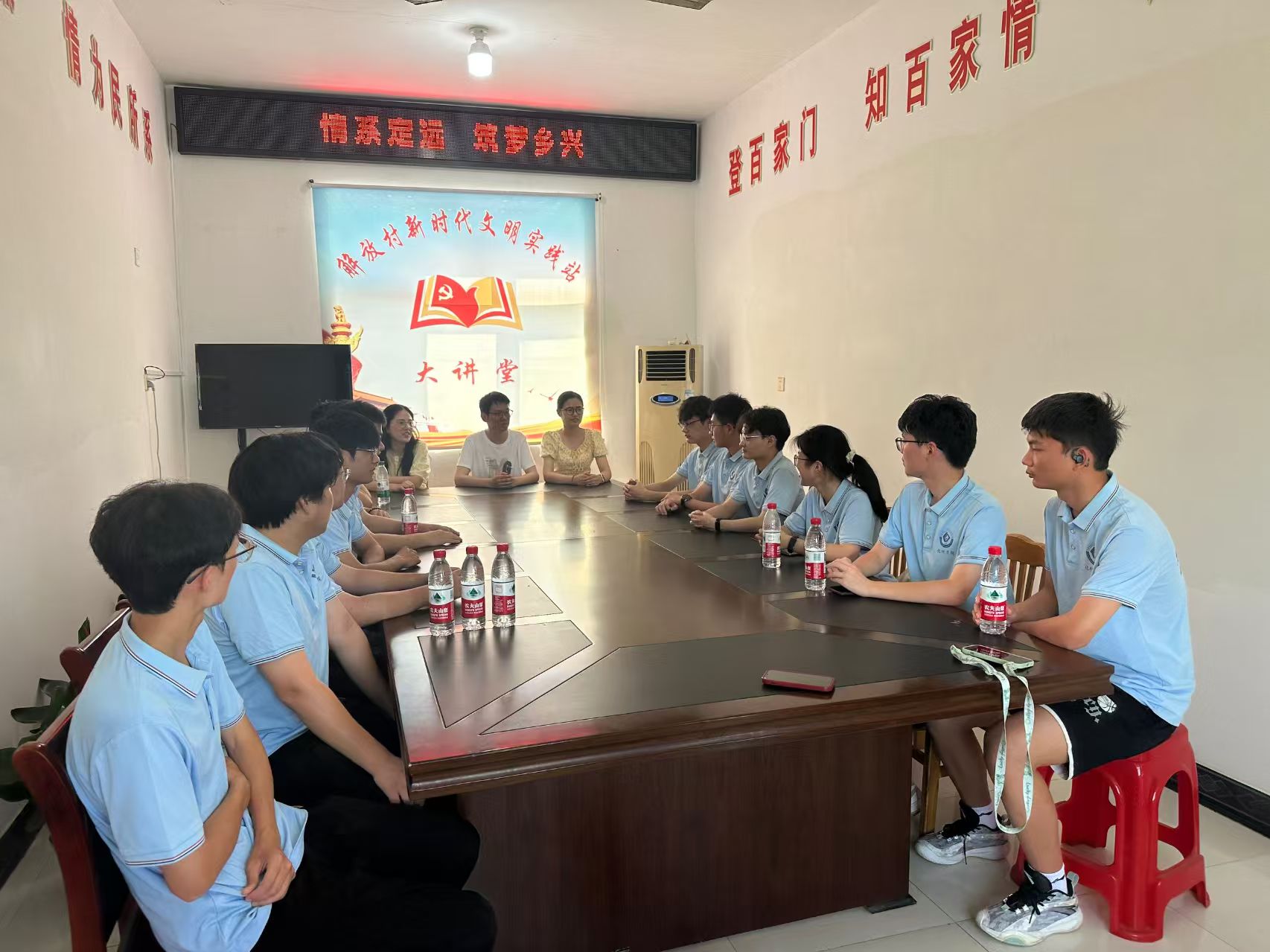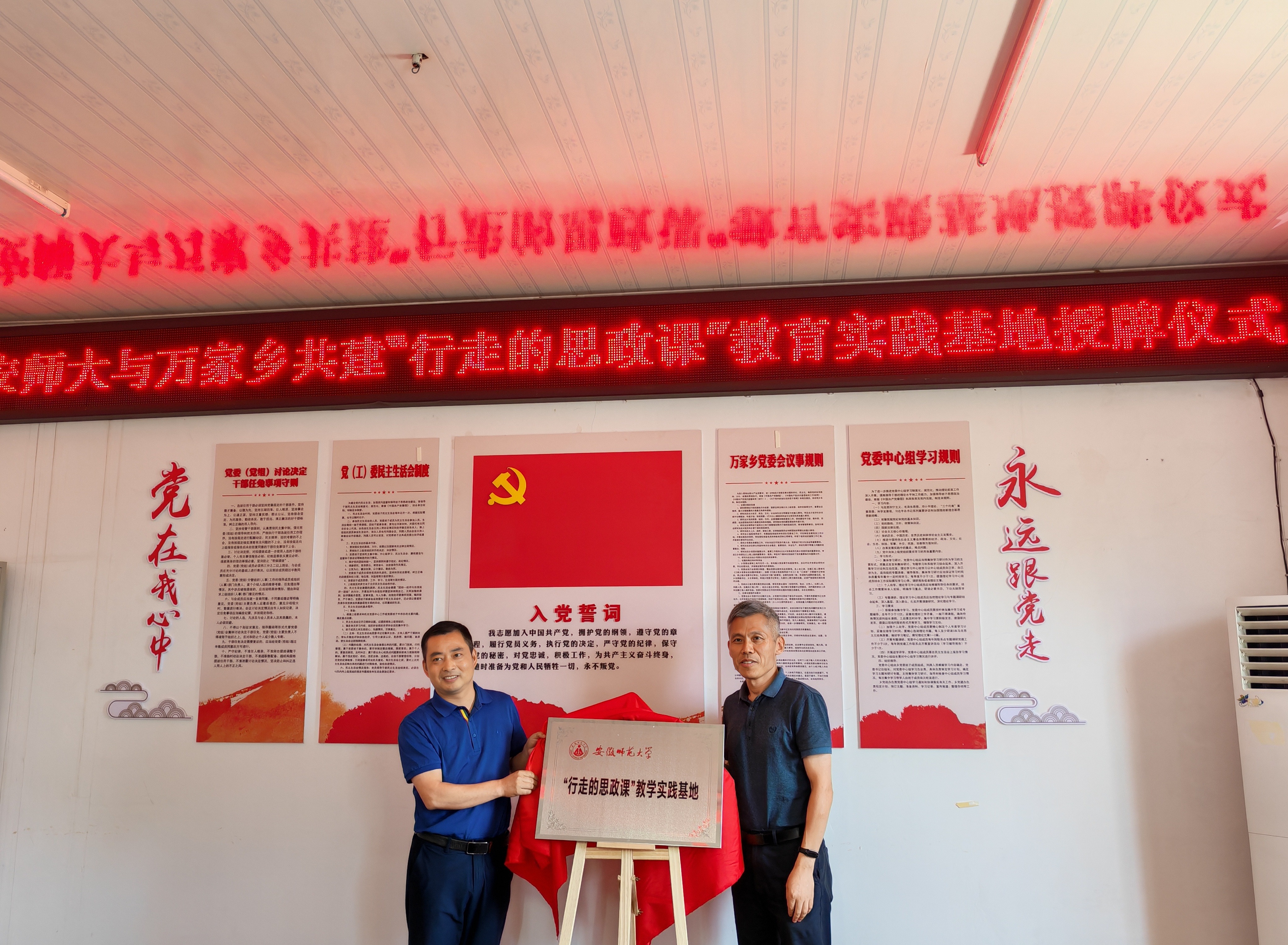 党委书记梁齐军、党委副书记李古州、社会实践指导教师孔婷婷、王辉、梅冠东一行赴宁国万家乡慰问暑期社会实践师生。在万家乡政府,梁齐军一行参加“化”雨润芽,“材”风为蕾爱心支教团队慰问座谈会。万家乡人民政府乡长张伟佳、党委副书记汪喆、党委委员殷明月、团委书记赵芳姣参加座谈会。梁齐军与张伟佳共同为安徽师范大学在宁国市万家乡建立的“行走的思政课”教学实践基地揭牌,为后续合作打下坚实基础。