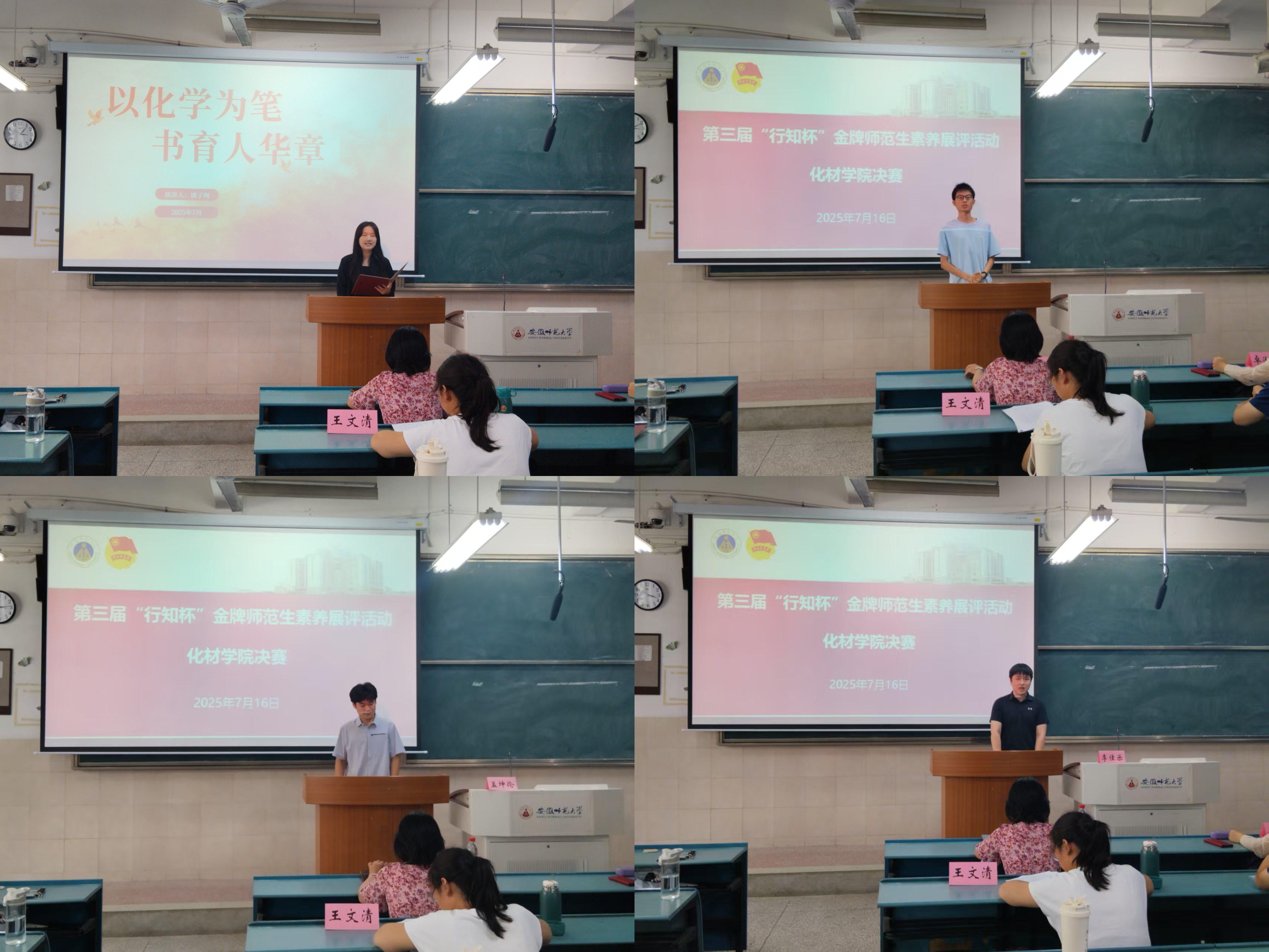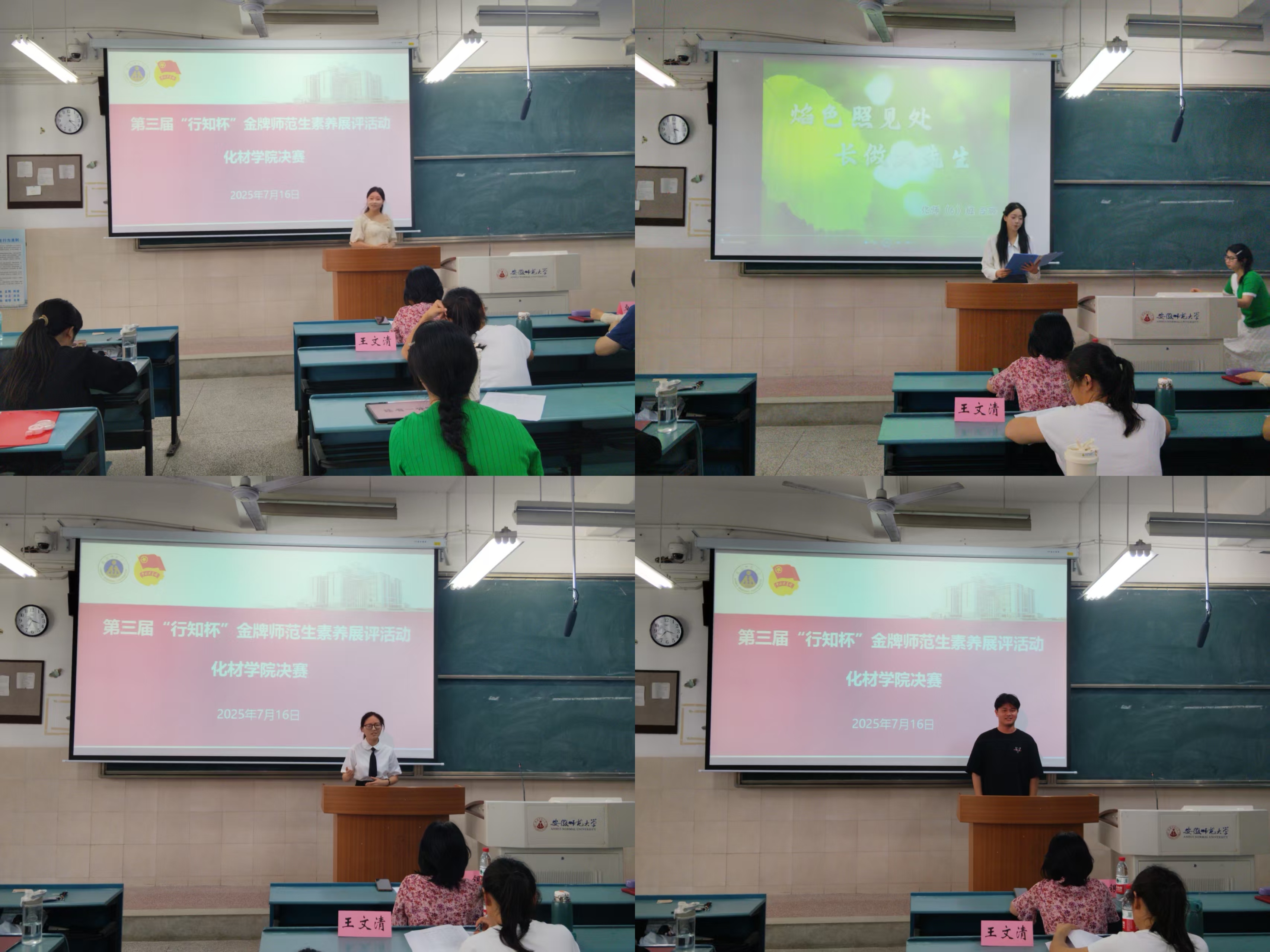在行知楼5号楼301、302、303教室举办第三届“行知杯”金牌师范生素养展评活动院赛。学院专业课老师分别担任模拟授课、主题演讲、教案设计、教学板书比赛评选,学院党委书记梁齐军、副书记李古州到场观摩。