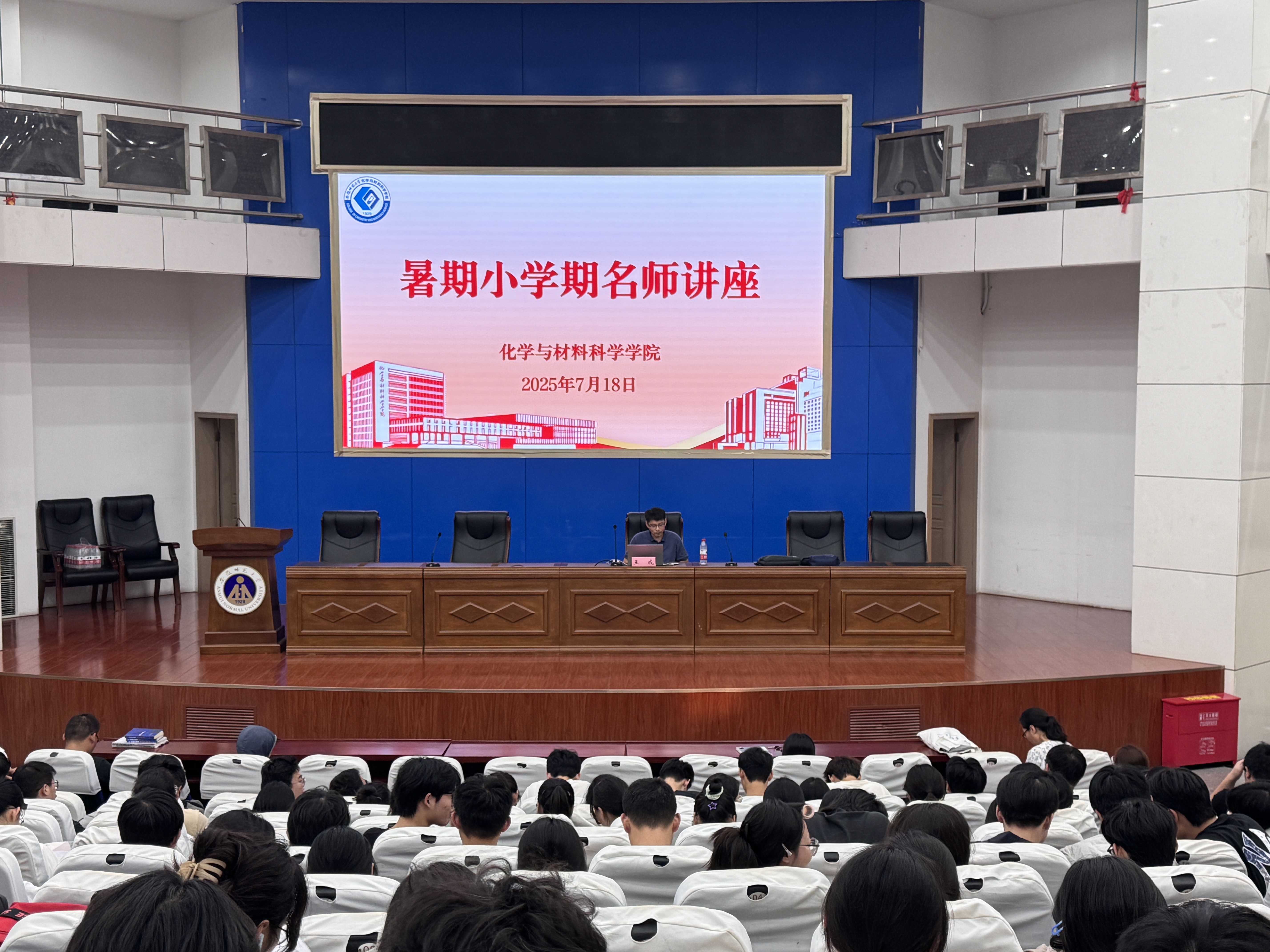 于敬文图书馆报告厅举行暑期小学期名师讲座。宣城中学王成老师、安徽师范大学附属中学史永鑫老师、院内指导教师代表及小学期全体学生共同参会,本次活动由卡通色情