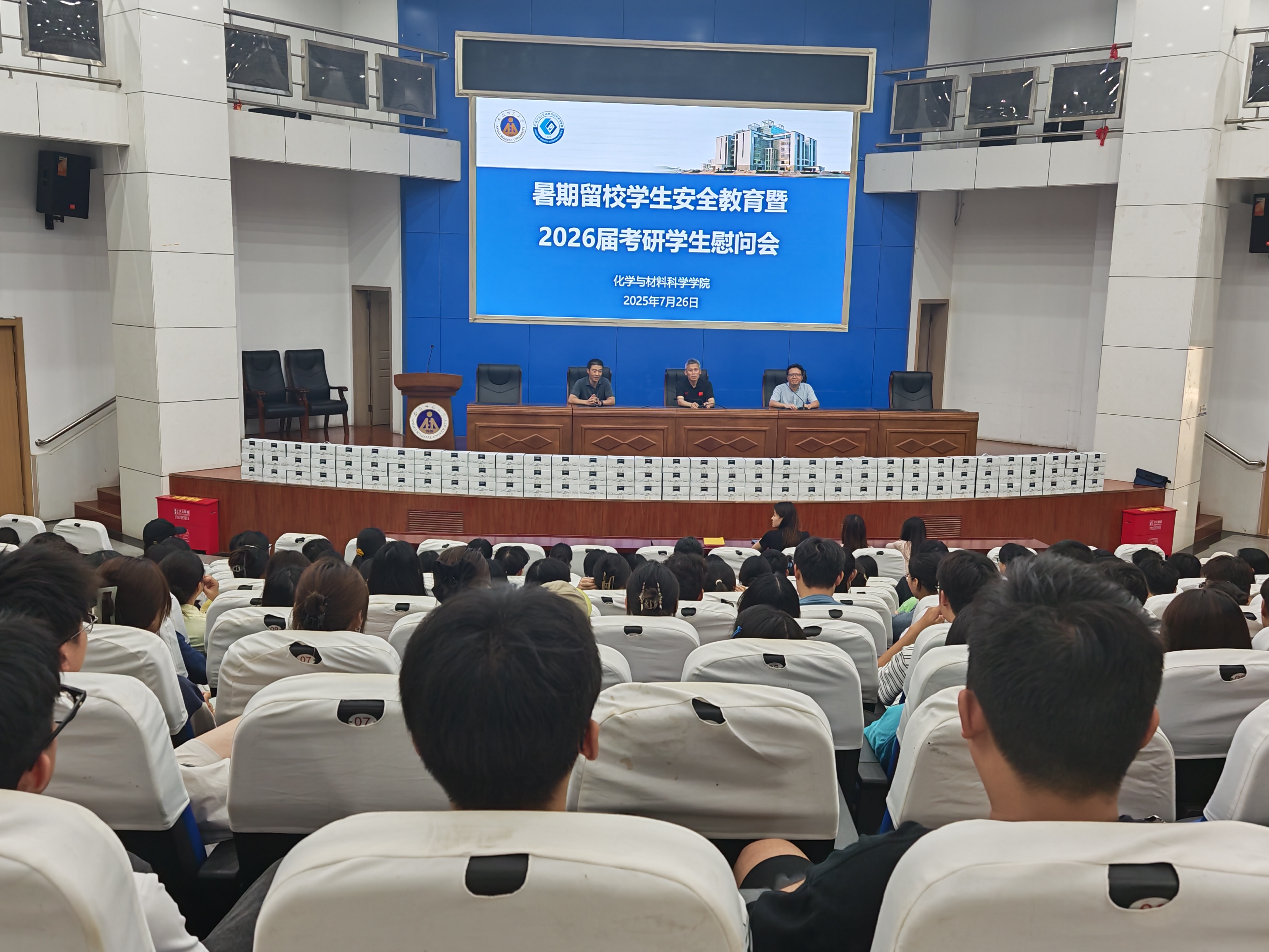 在敬文图书馆报告厅举行了暑期留校学生安全教育暨2026届考研慰问会,院党委书记梁齐军、院长庄桂林、辅导员陈静、朱文棋、朱梦茹、李汝共同出席了慰问活动,为暑期备战考研留校学生送去了温暖与关怀。会议由学院党委副书记李古州主持。