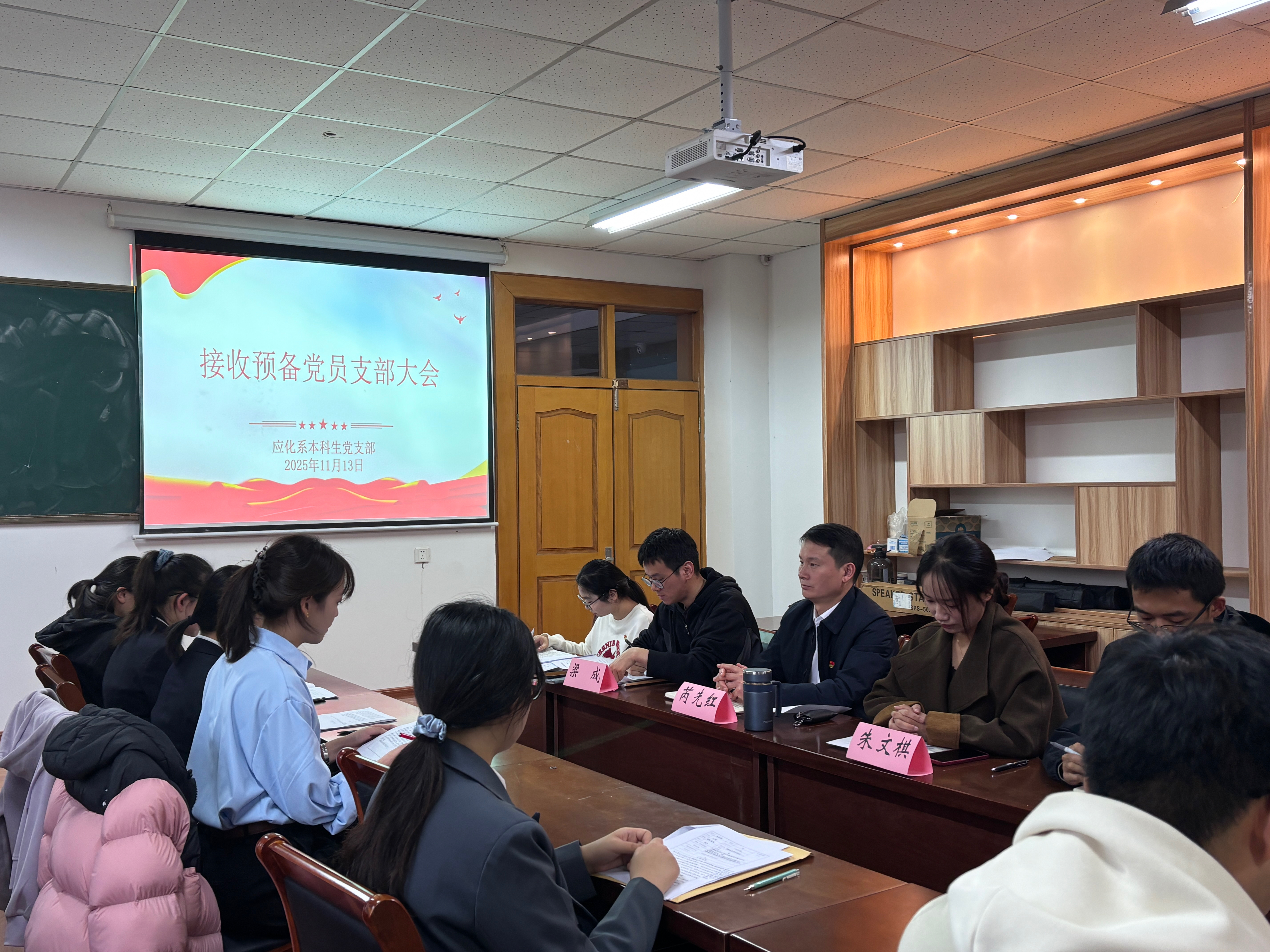 2025年11月13日下午,应化系本科生党支部于学苑6号楼114会议室召开了党的二十届四中全会精神专题学习会暨党员发展支部大会,学院党委副书记、纪委书记芮先红列席指导,会议由支部书记梁成主持。