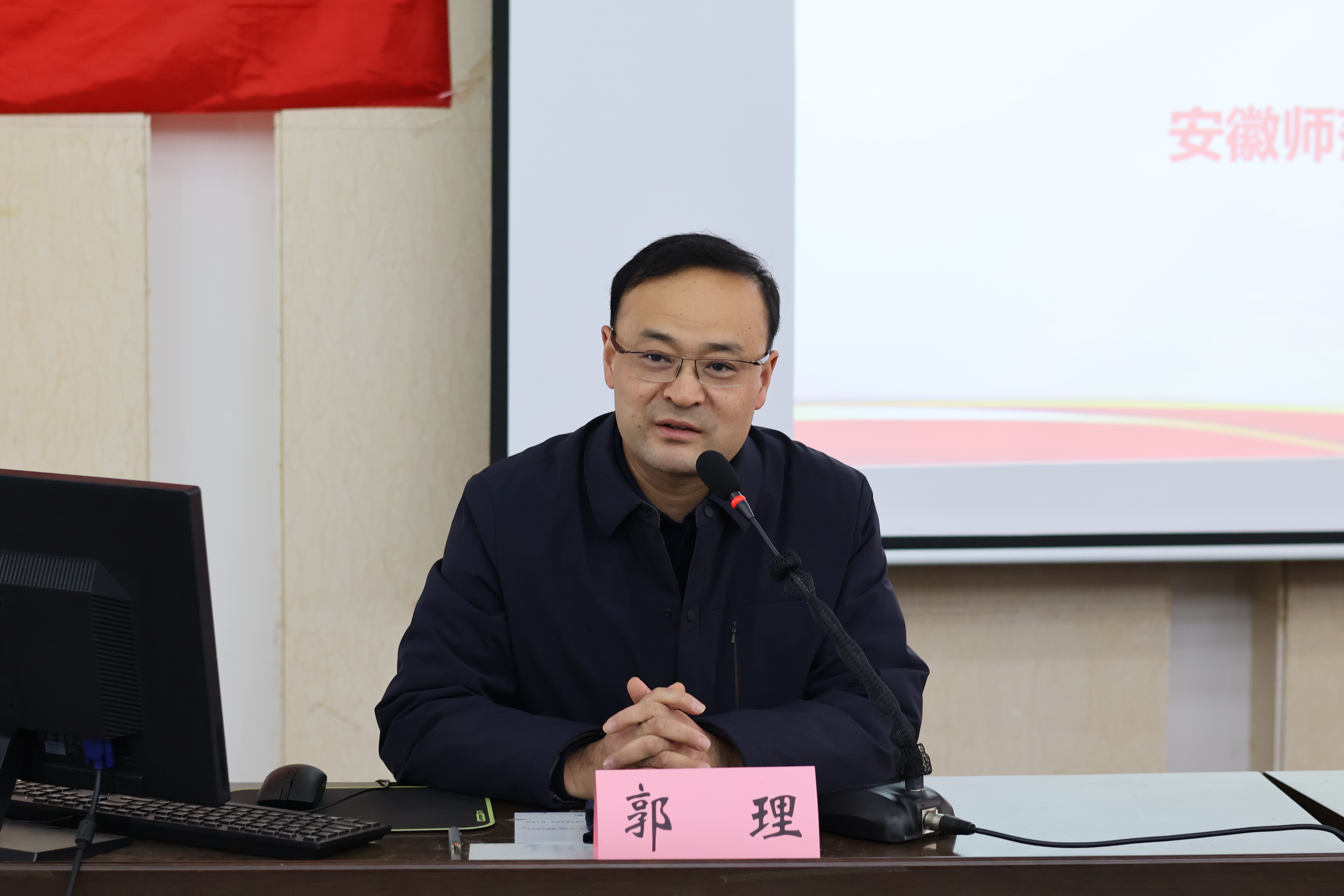 伴随着庄严的国歌,开班典礼正式拉开帷幕。芮先红首先宣读《关于举办安徽师范大学第19期(学院第13期)党员教育培训班的通知》,明确培训目标、课程安排与考核标准,并着重强调培训纪律。他要求全体学员严格遵守考勤制度、课堂纪律与研讨要求,以端正学风确保培训实效,展现学生党员的优良作风。