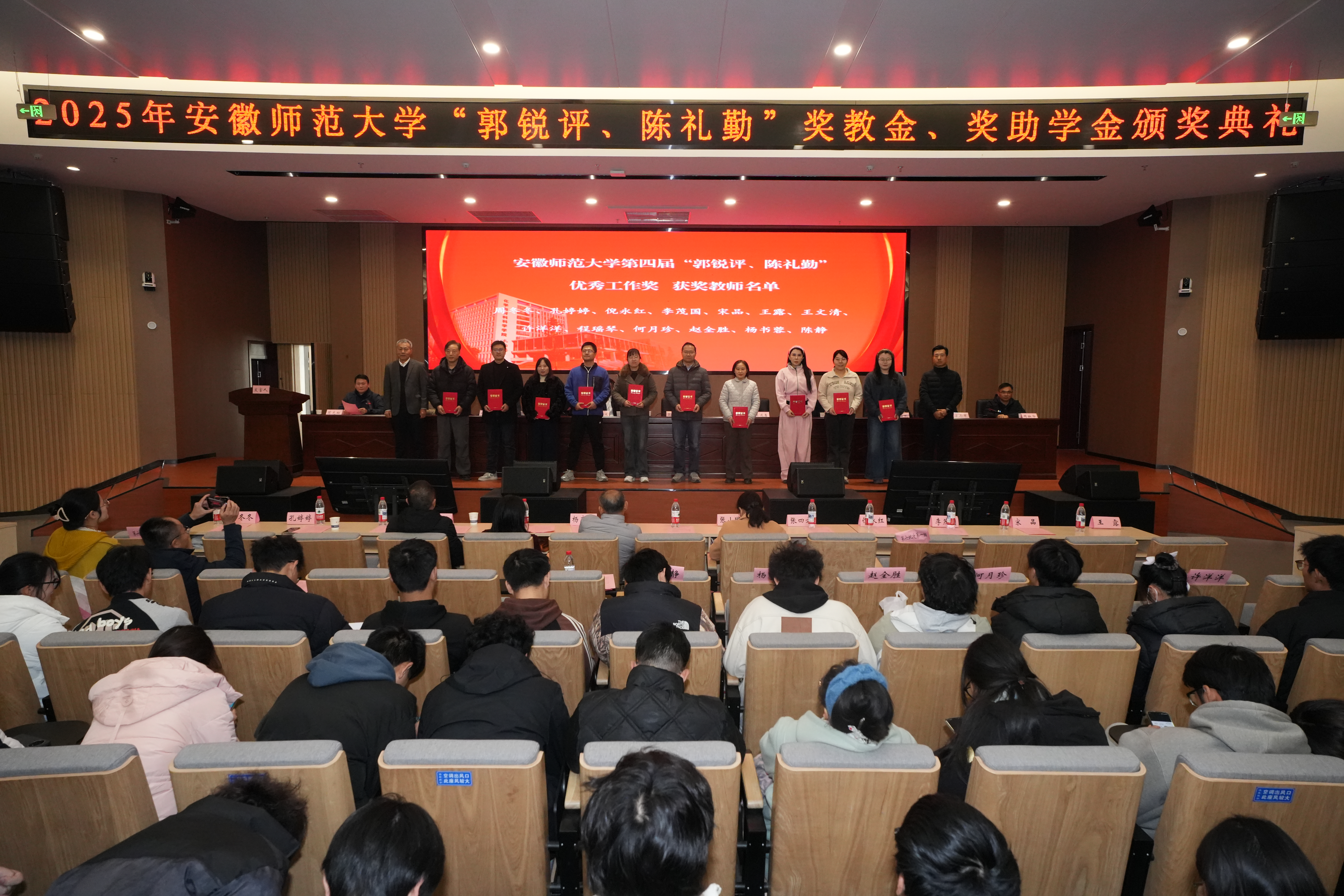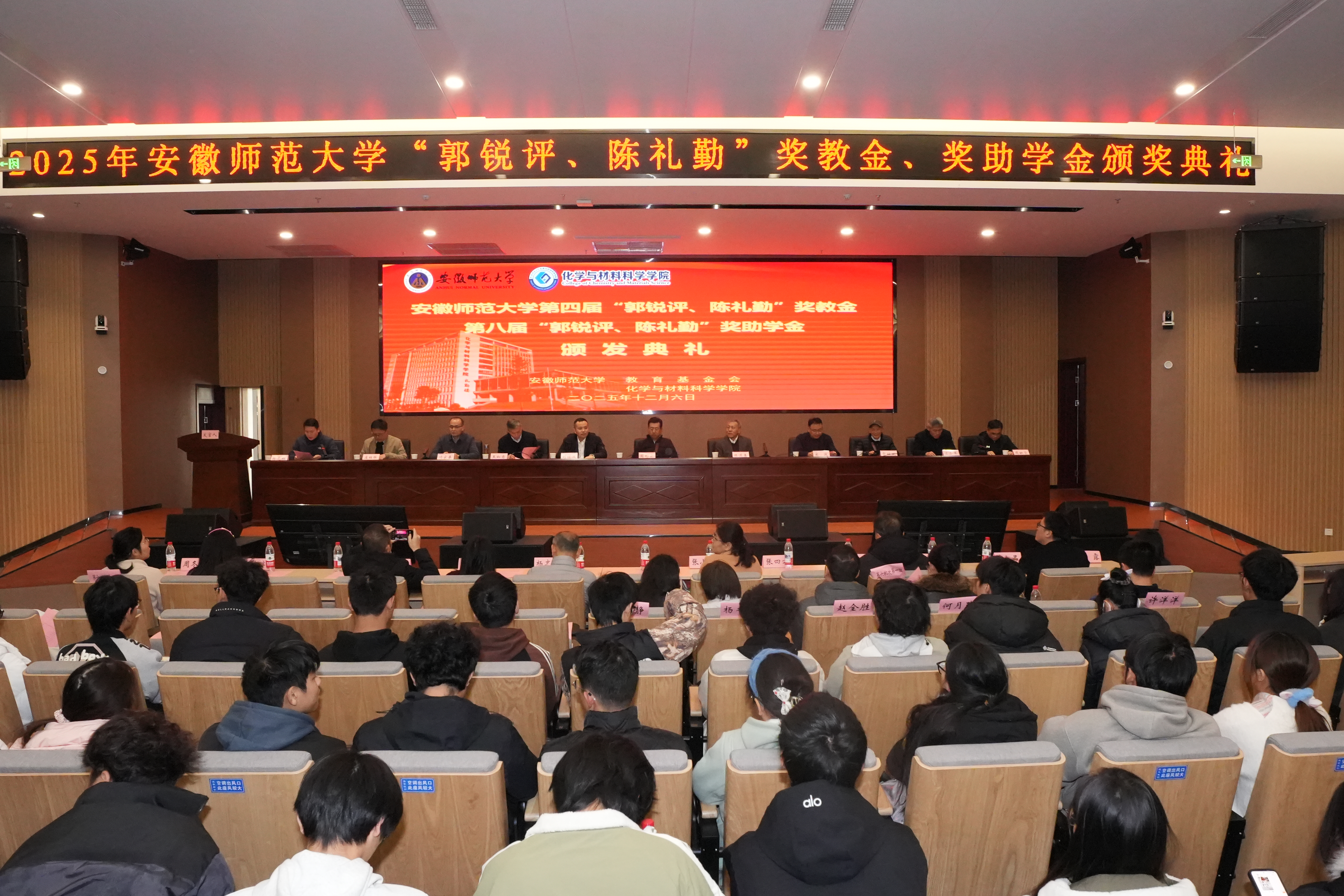 12月6日上午,安徽师范大学第四届“郭锐评、陈礼勤”奖教金、第八届“郭锐评、陈礼勤”奖助学金颁发典礼在花津校区文典楼报告厅隆重举行。梯尔希(南京)药物研发有限公司执行董事芮彬云先生、研发经理刘继汉先生,国家杰青、安徽师范大学卡通色情