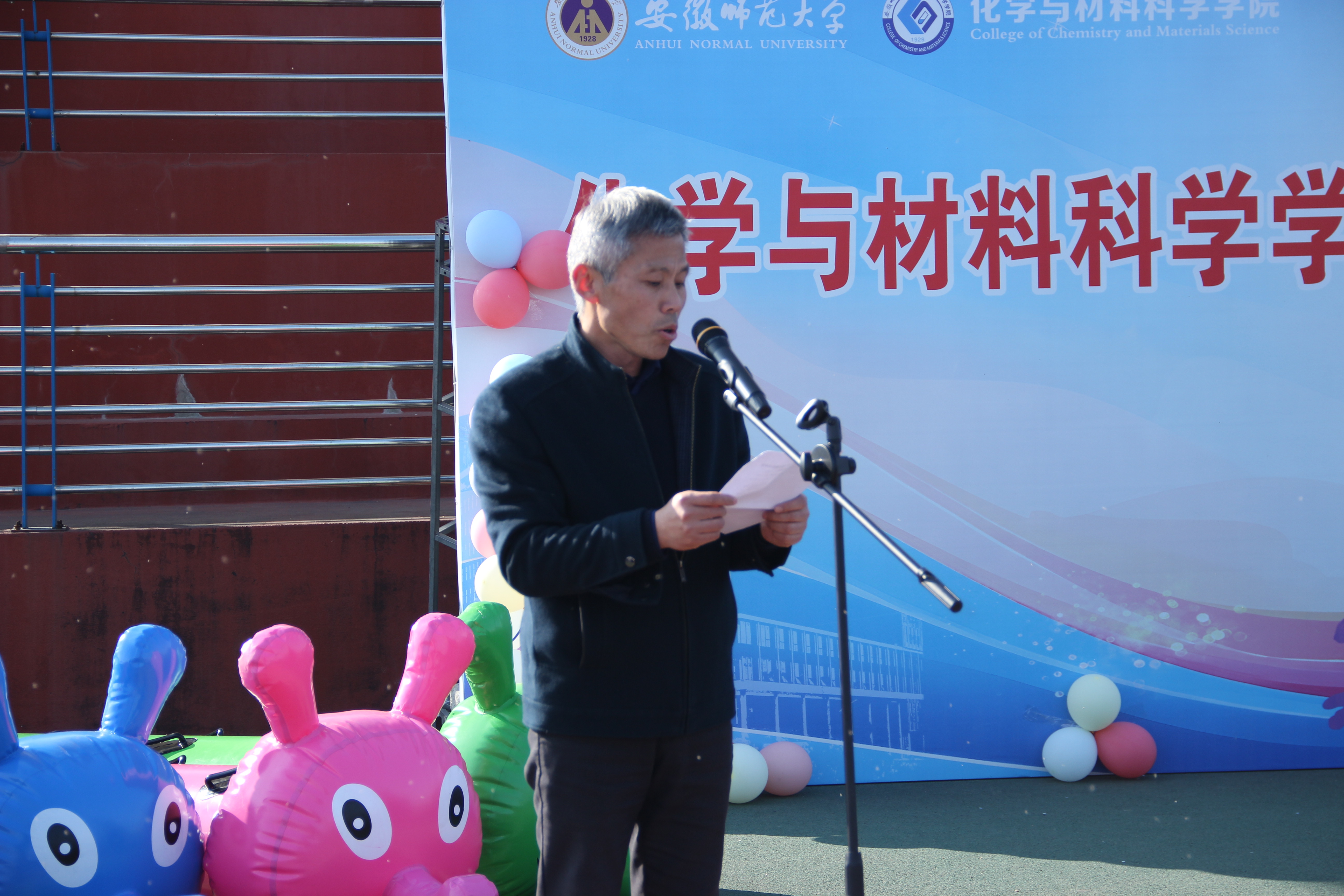 党委书记梁齐军、校人事处副处长方臻、学院党委副书记芮先红、副院长周映华、化工系主任崔晓峰、化学系主任李忠原、应化系主任史永强、材料系主任濮军、高分子系主任华赞出席活动。本届趣味运动会共设置5个项目,470余名师生组成的30支队伍参赛。开幕式由学院辅导员梅冠东主持。