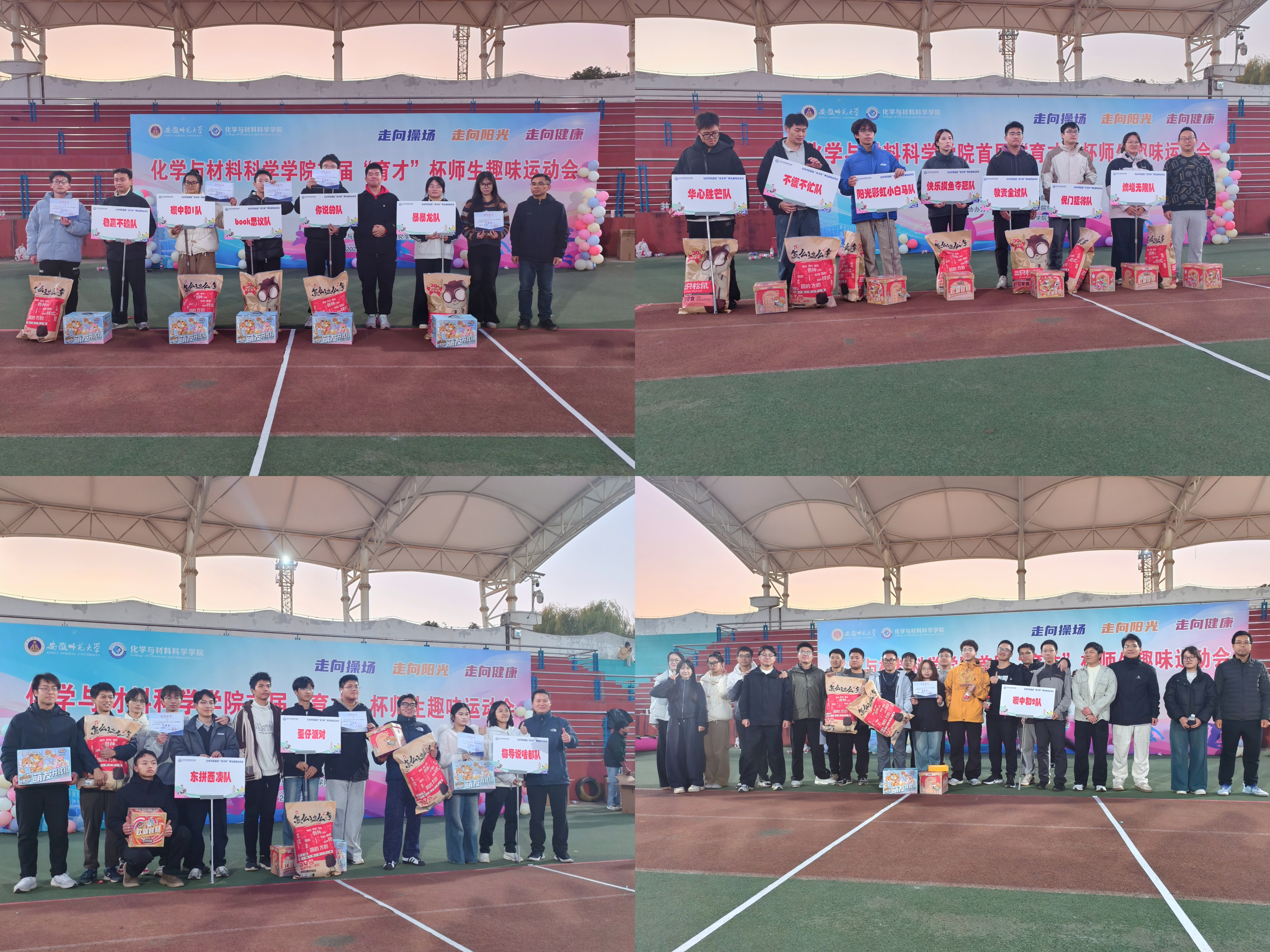 所有项目顺利结束后,闭幕式暨颁奖仪式正式举行。根据各队伍的综合表现,评委团现场评定出特等奖及一、二、三等奖。出席活动的领导嘉宾依次为获奖队伍颁发荣誉证书与奖品,掌声与欢呼声此起彼伏,每一份荣誉都见证着师生们的协作与拼搏。颁奖结束后,领导嘉宾与全体参赛队伍、工作人员共同合影留念,大家面带笑容、定格瞬间,镜头里的欢声笑语定格成本次趣味运动会最温暖的记忆,也为这场充满活力的师生盛会画上圆满句号。