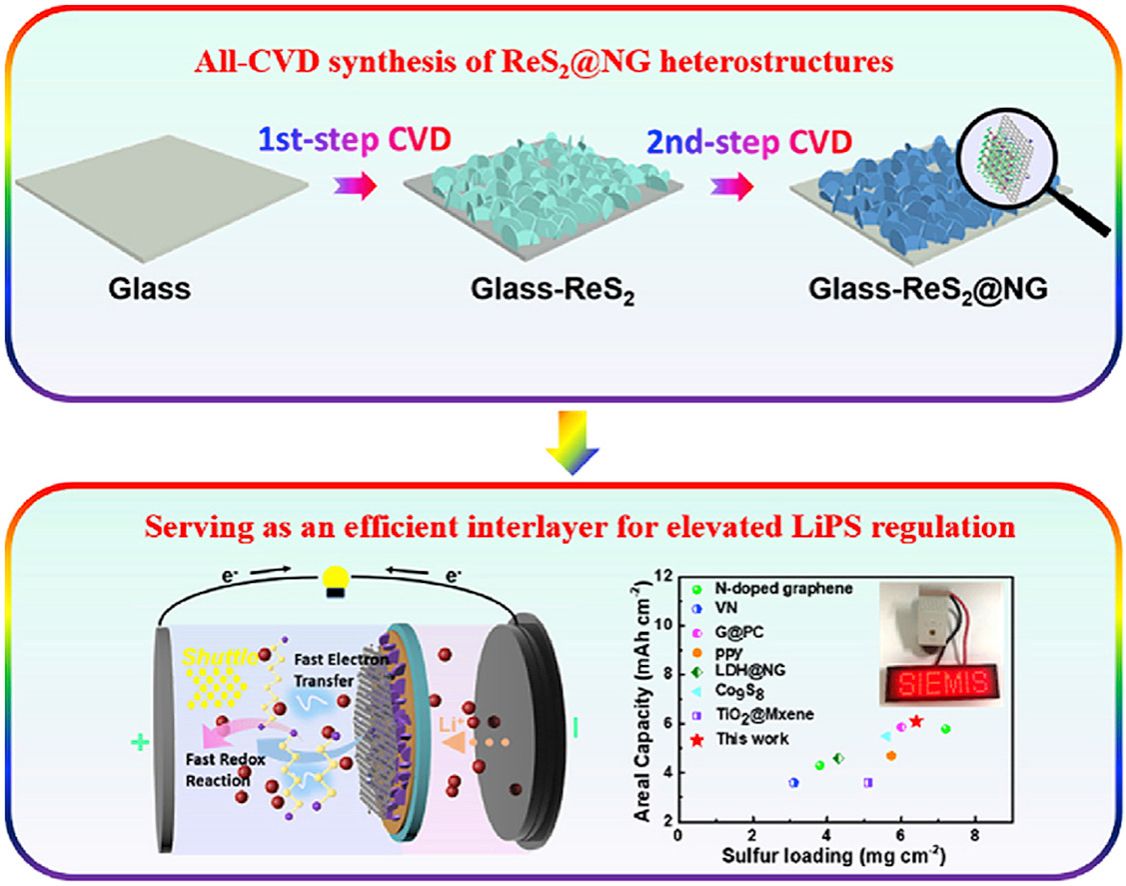 an Ultralight All-CVD-Built ReS2@N-Doped Graphene Heterostructure Interlayer for Lithium–Sulfur Batteries, Nano Energy, 2019, 66, 104190.