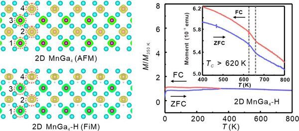 Mengqi Zeng*, Lei Fu*, Room-Temperature Magnetism in Two-Dimensional MnGa4-H Induced by Hydrogen Insertion, Adv. Mater. 2023, 35, 2210828.