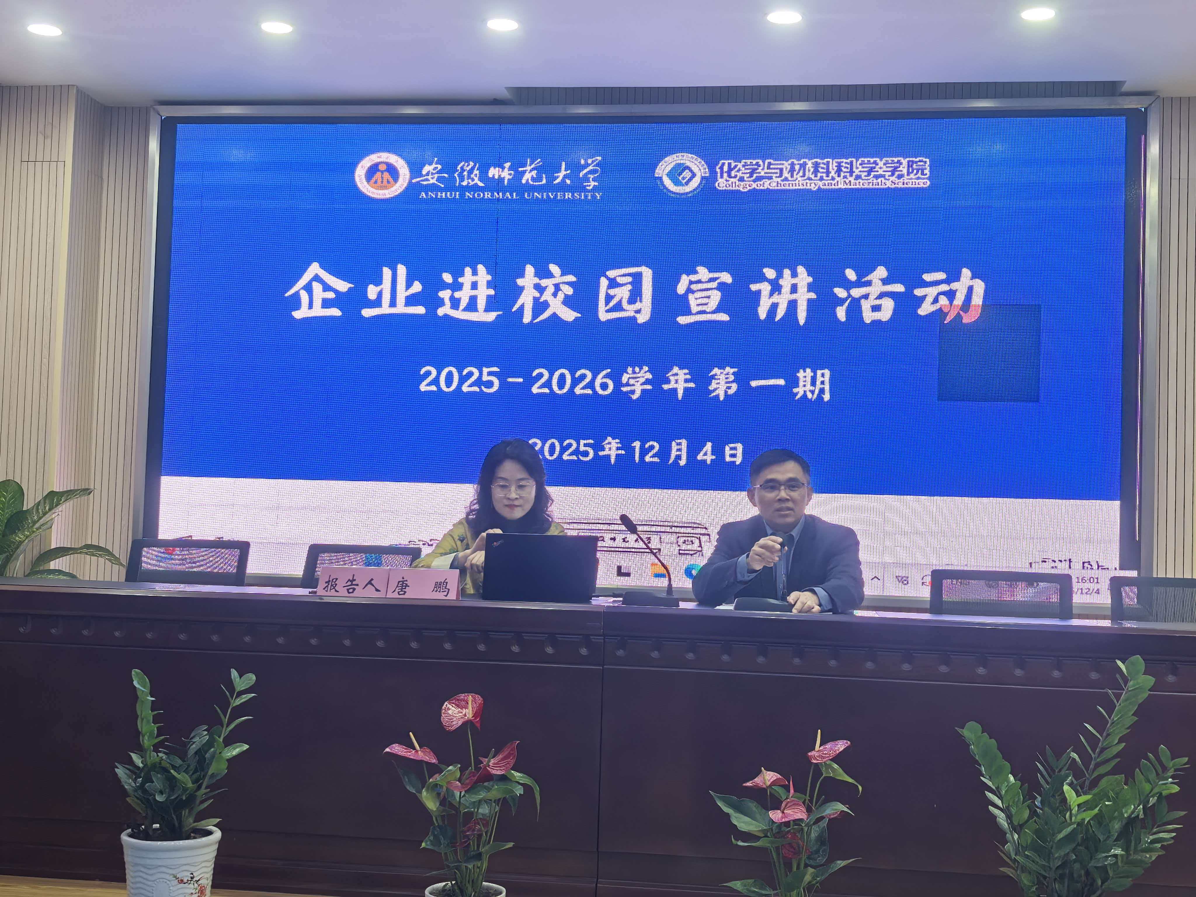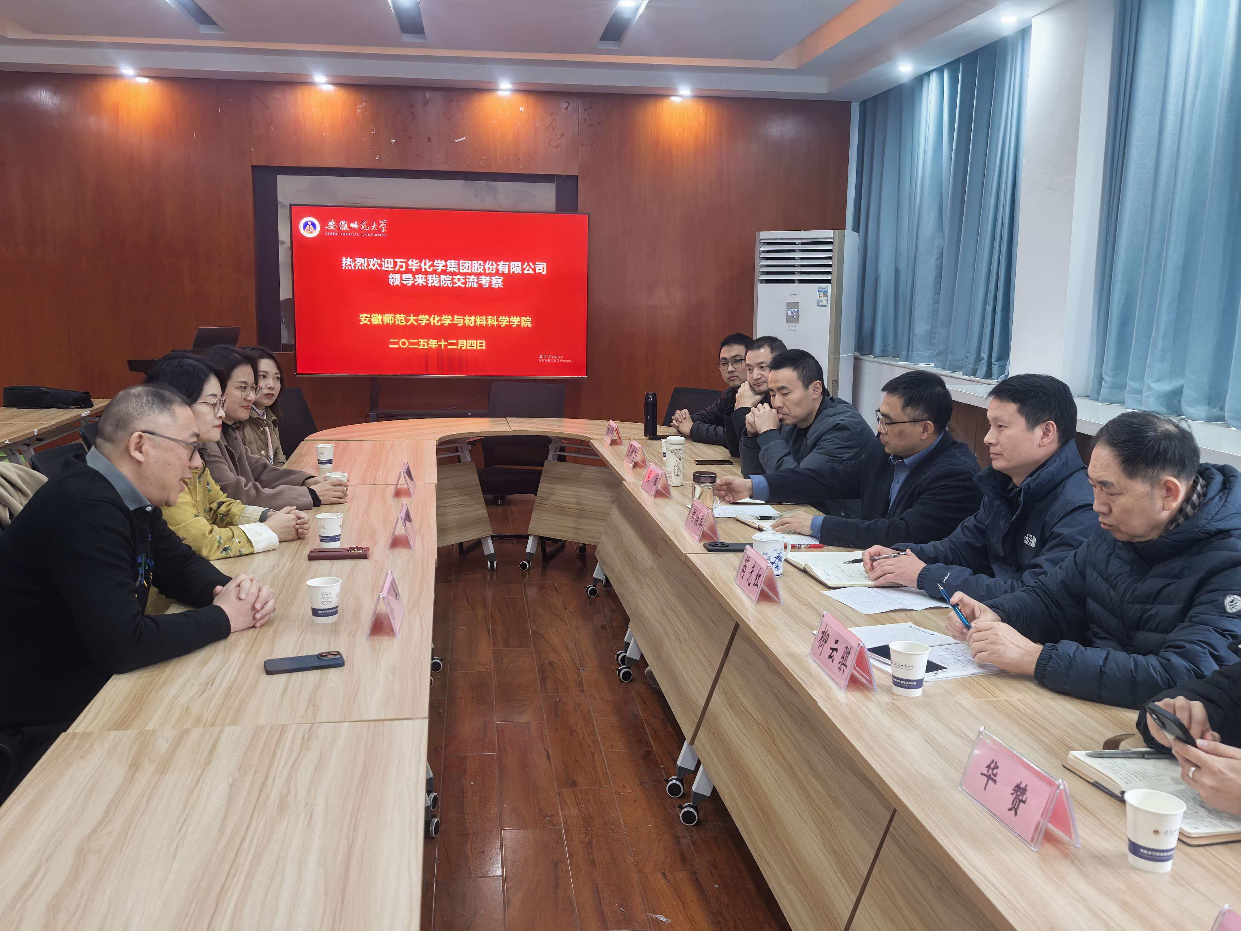 2025年12月4日下午,我院举办校企交流系列活动。万华化学集团股份有限公司采购中心副总经理唐鹏、上海迅凯新材料科技有限公司总经理孙兵、科大智能(合肥)科技股份有限公司副总裁李淑娜等莅临出席。